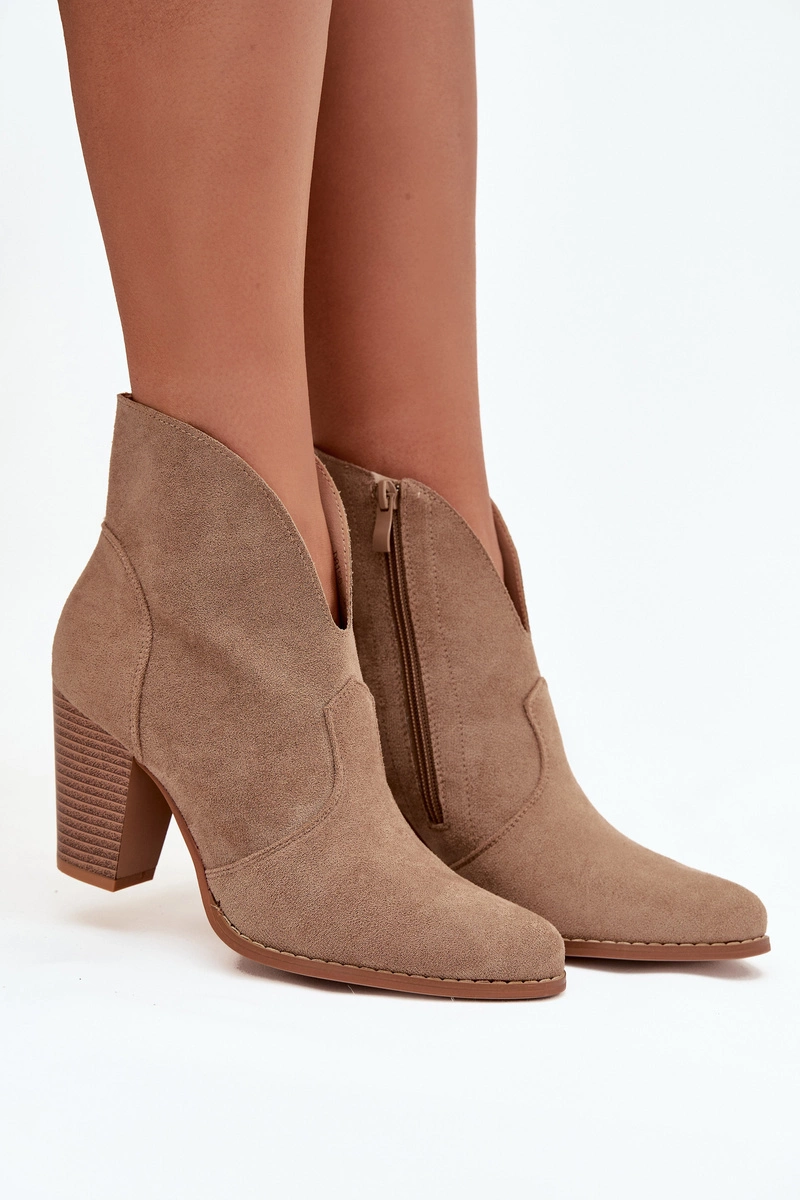 Botki Damskie Na Słupku Z Eko Zamszu Beżowe Elvirae