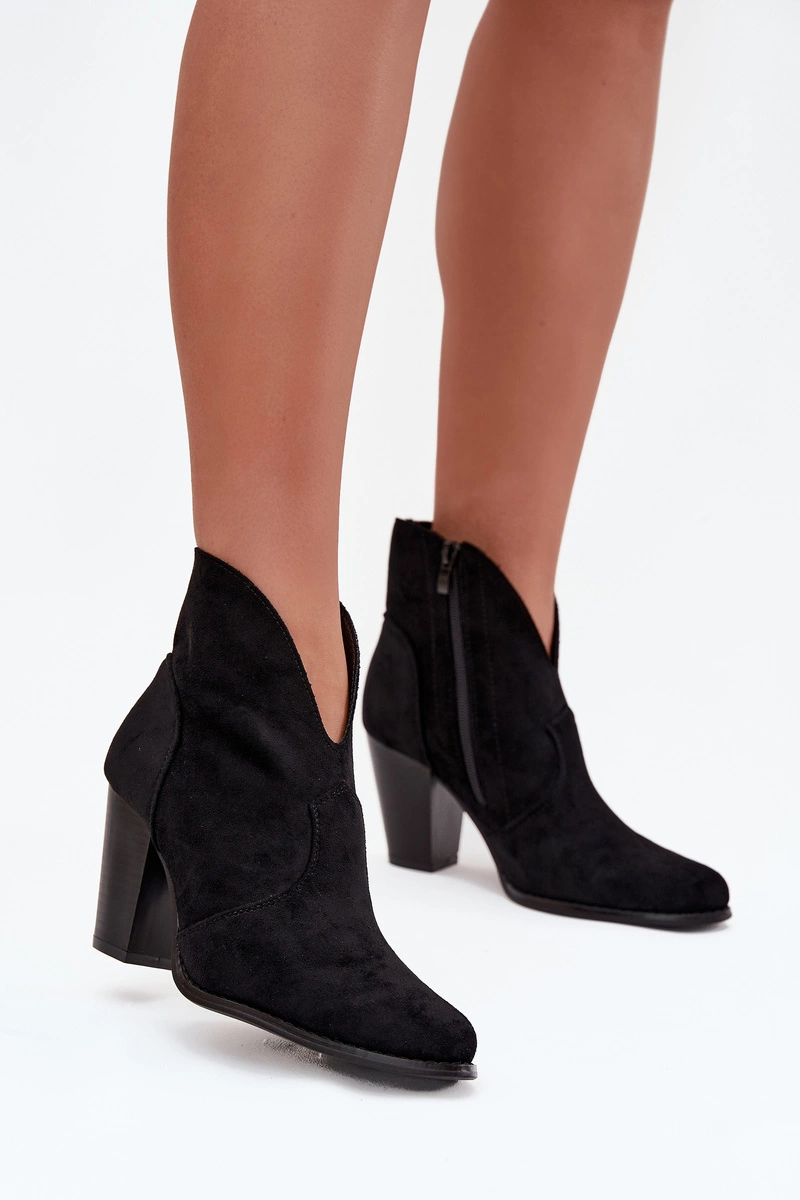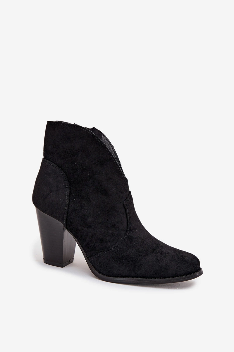 Botki Damskie Na Słupku Z Eko Zamszu Czarne Elvirae