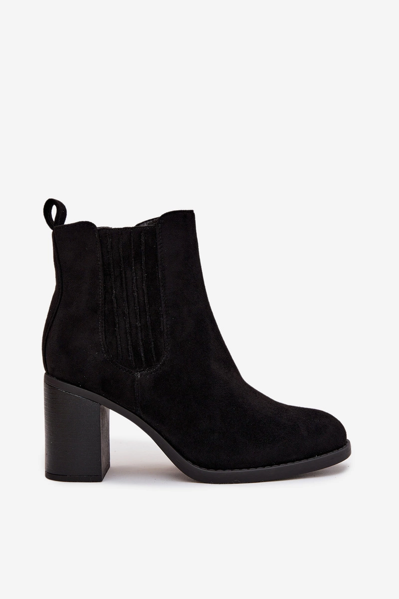 Ocieplane Botki Damskie Na Słupkowym Obcasie Czarne Brevina