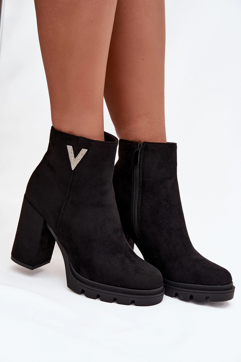 Botki damskie z eko zamszu to elegancka propozycja dla kobiet ceniących styl i wygodę. Osadzone na stabilnym obcasie typu słupek, zapewniają komfort noszenia i subtelnie podkreślają sylwetkę. Zaokrąglone noski nadają im klasycznego charakteru, a praktyczny zamek ułatwia zakładanie i zdejmowanie. Uwagę przyciąga błyszczący detal w kształcie litery V umieszczony z boku cholewki, który dodaje oryginalności i modnego akcentu. To model doskonały zarówno do codziennych, jak i eleganckich stylizacji.