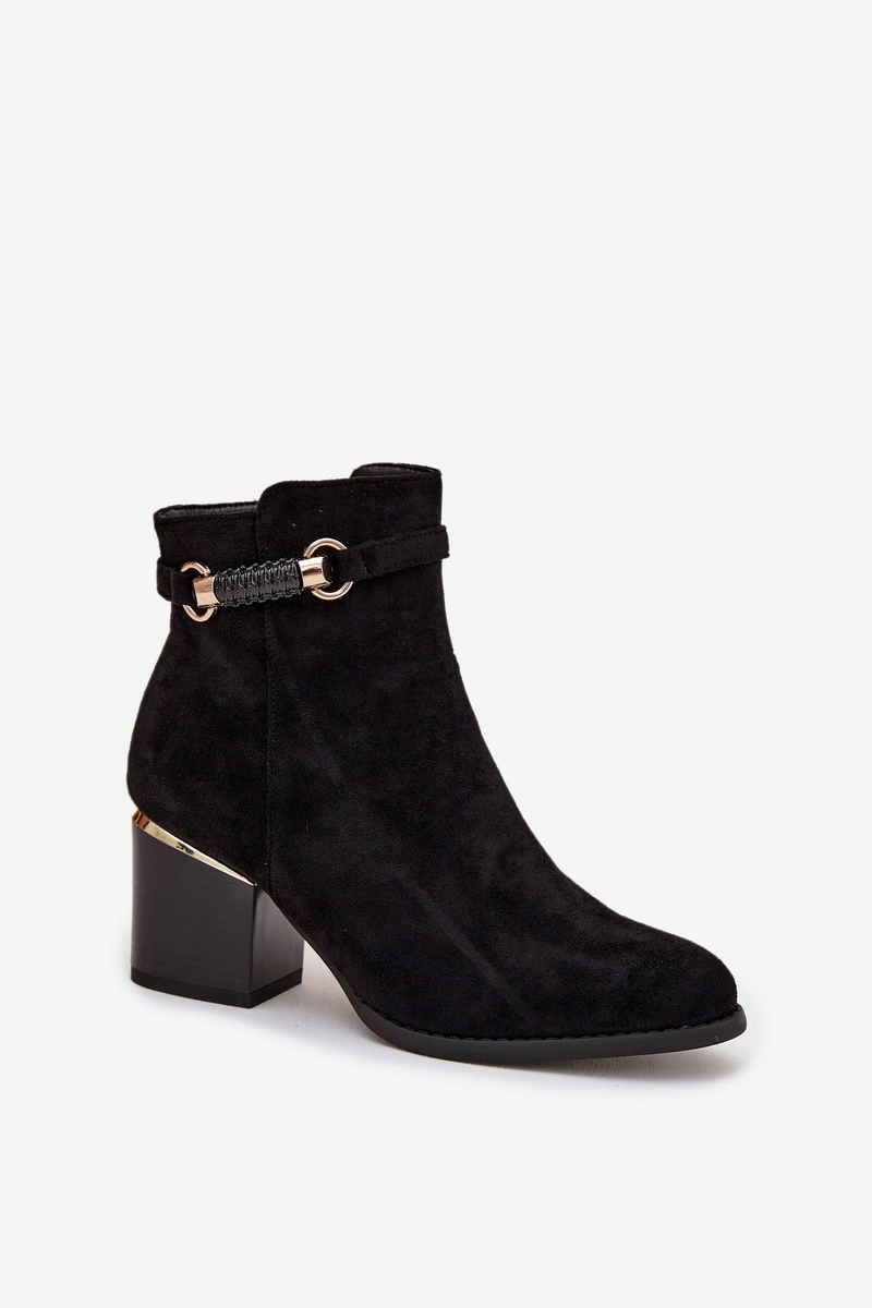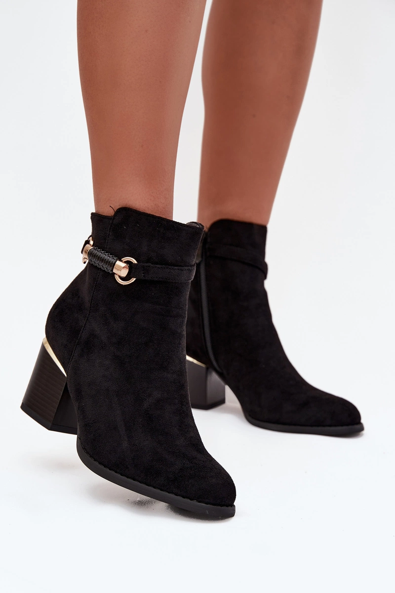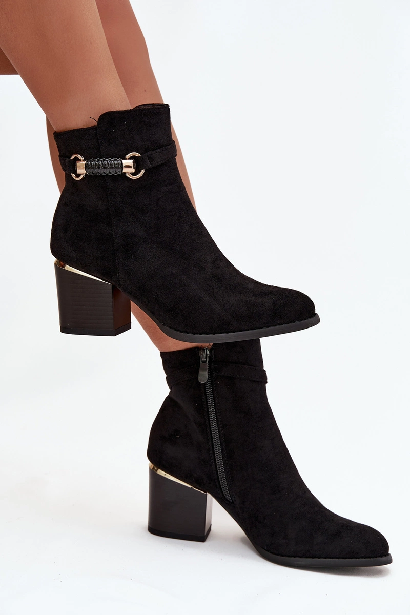 Botki Damskie Ocieplane Na Słupku Z Ozdobnym Paskiem Czarne Galissa