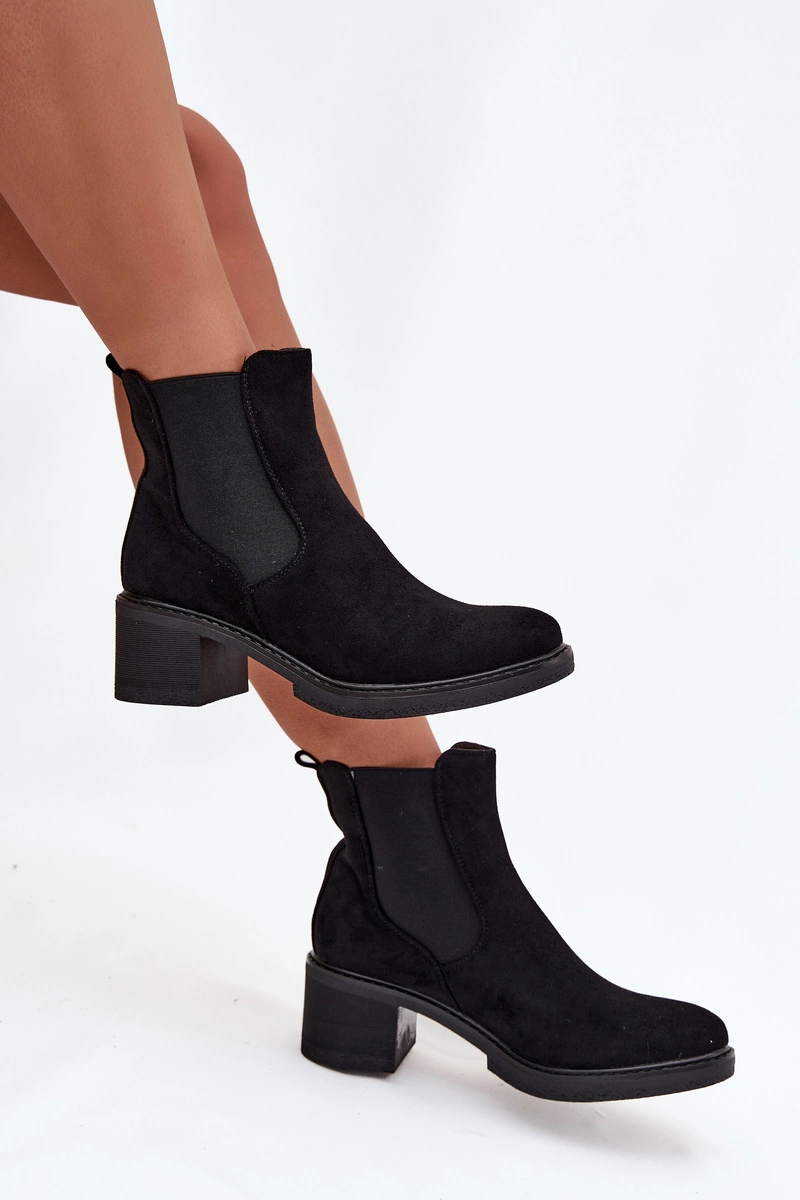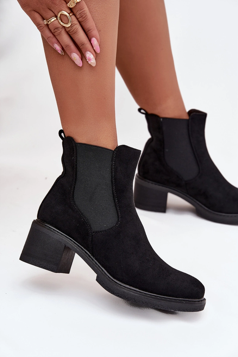 Botki Sztyblety Damskie Na Klocku Czarne Luvina