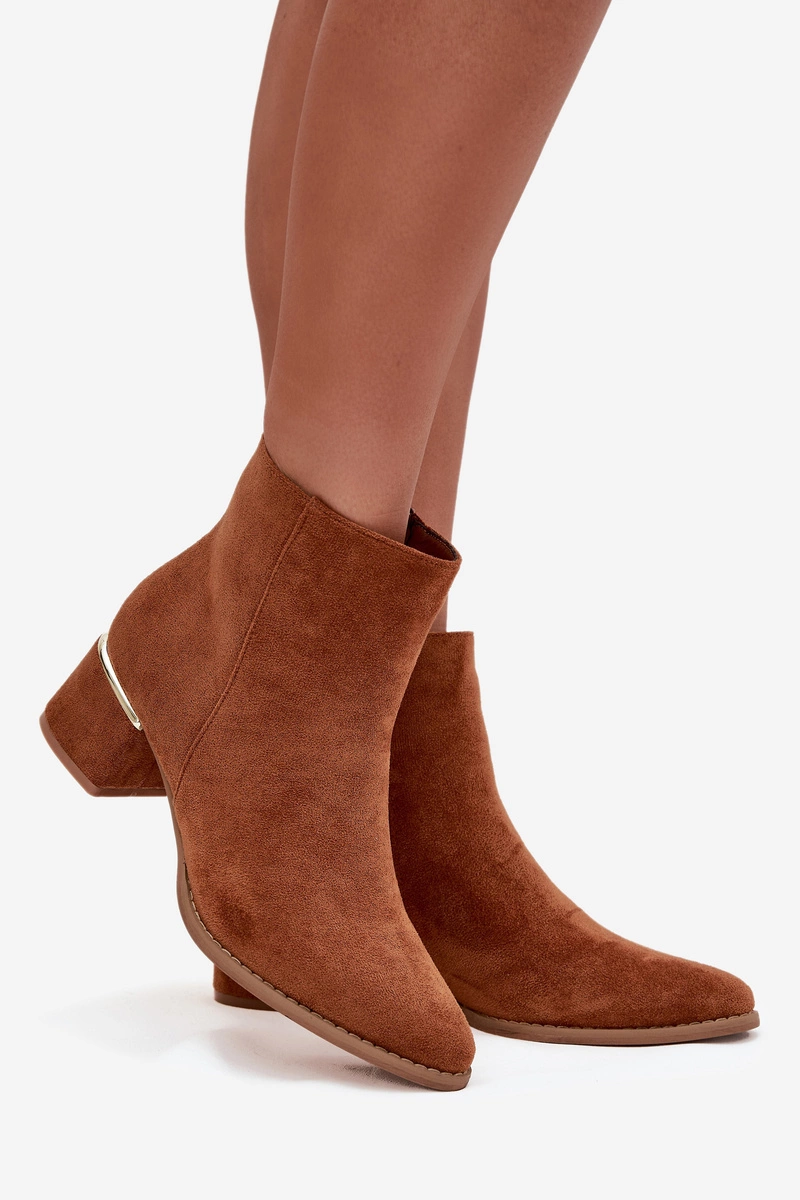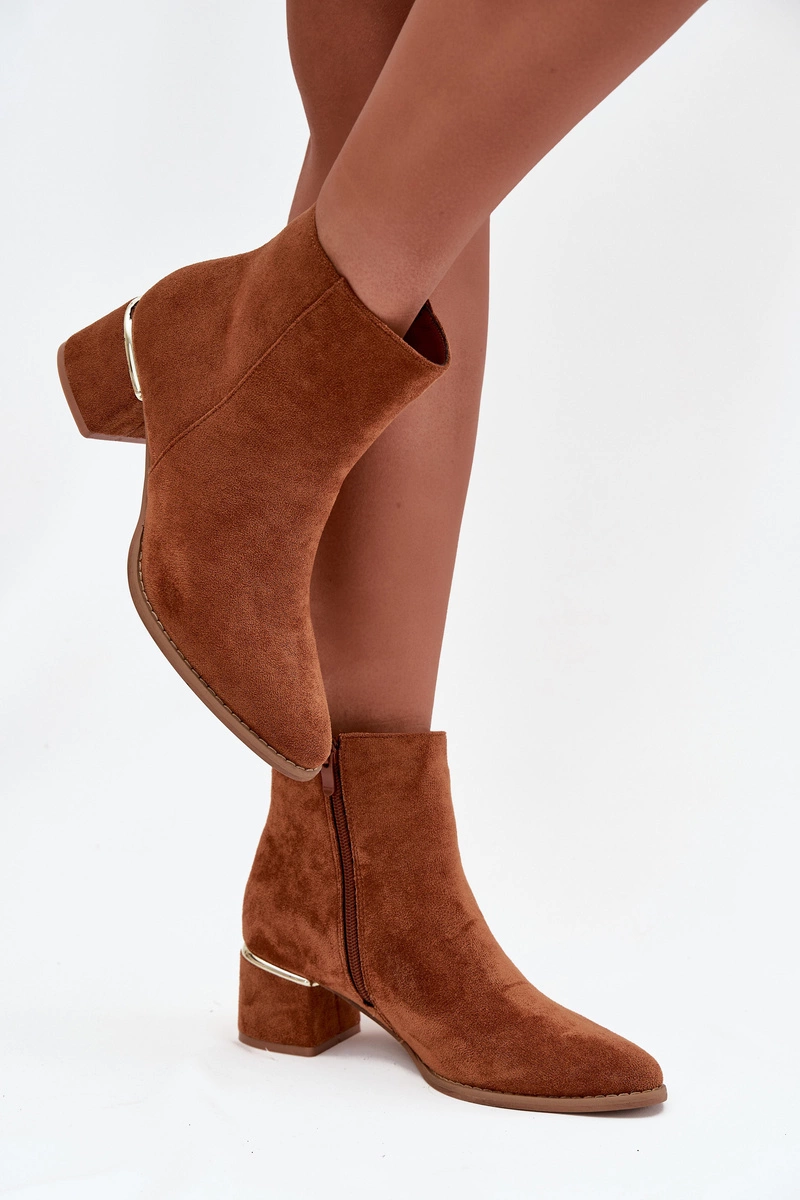 Botki Damskie Na Obcasie Ze Złotym Elementem Ocieplane Camel Nolessa