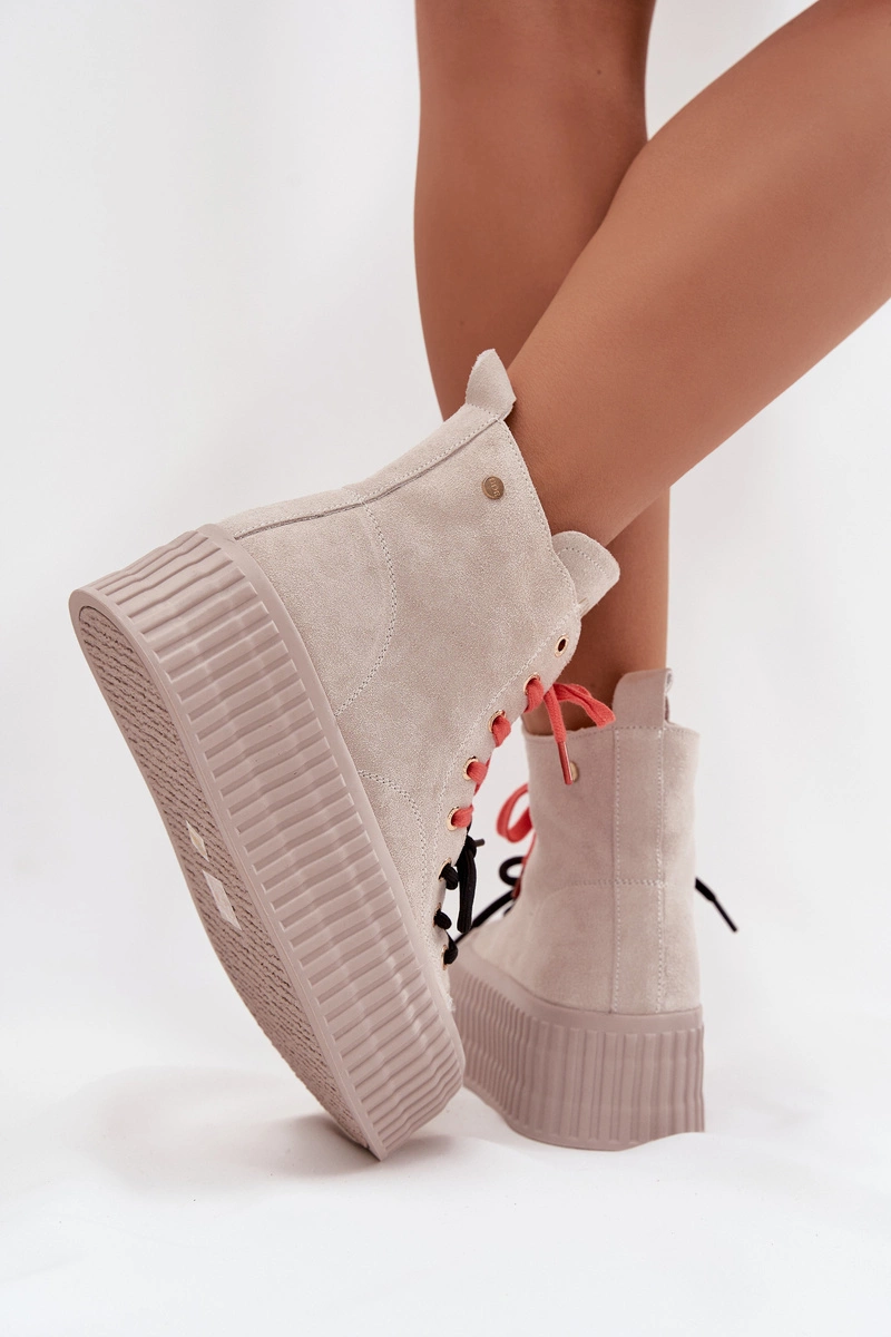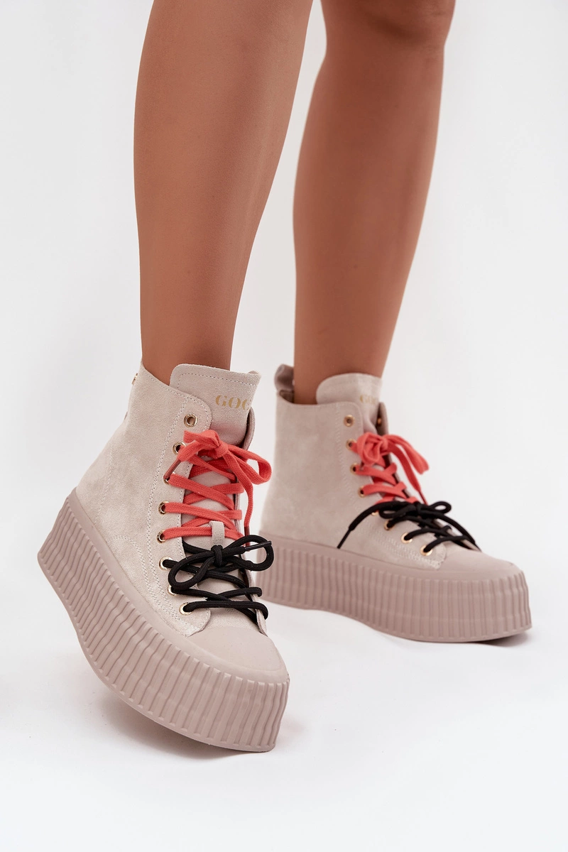 Zamszowe Ocieplane Trampki Damskie Na Masywnej Platformie GOE SS2N4047 Beżowe