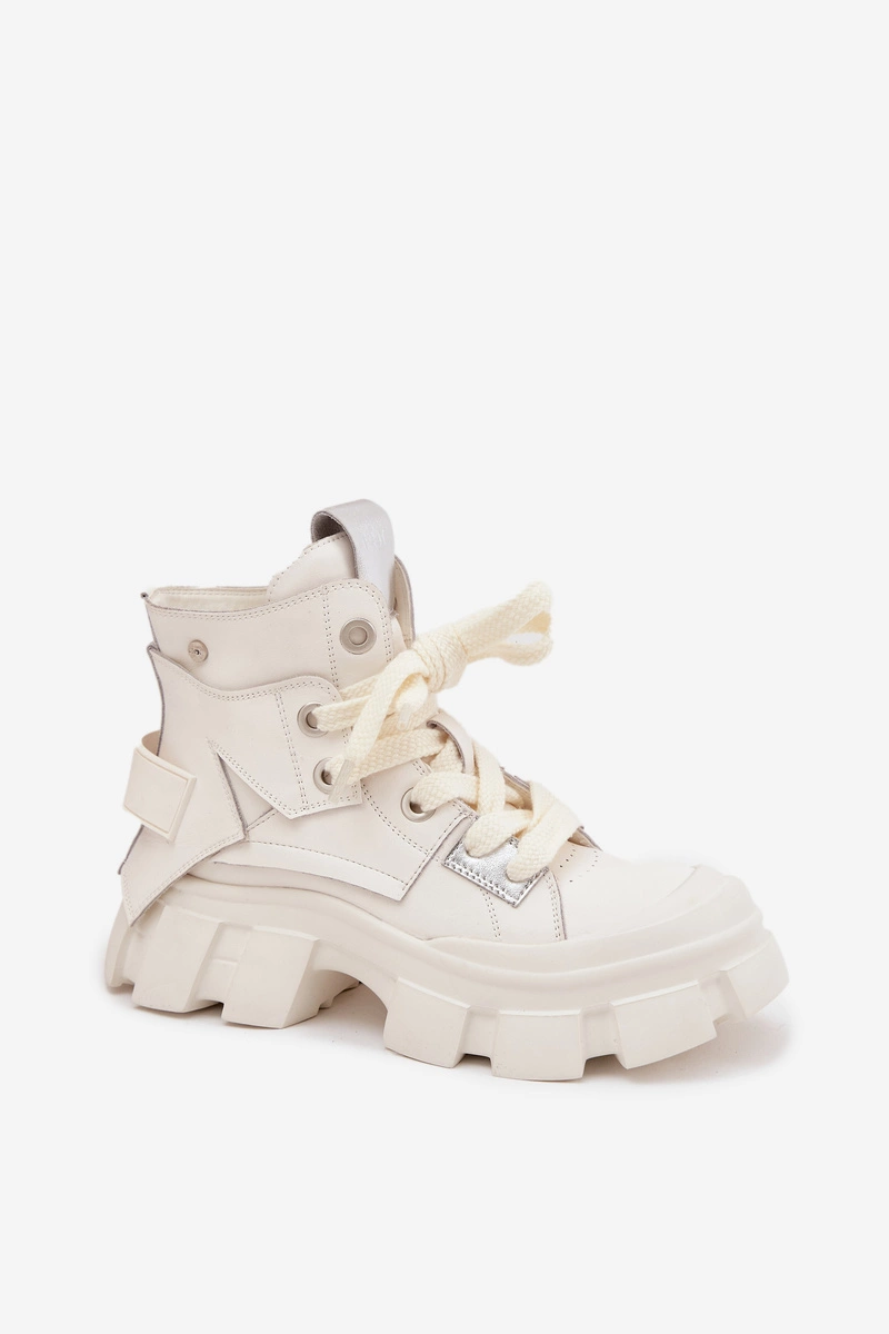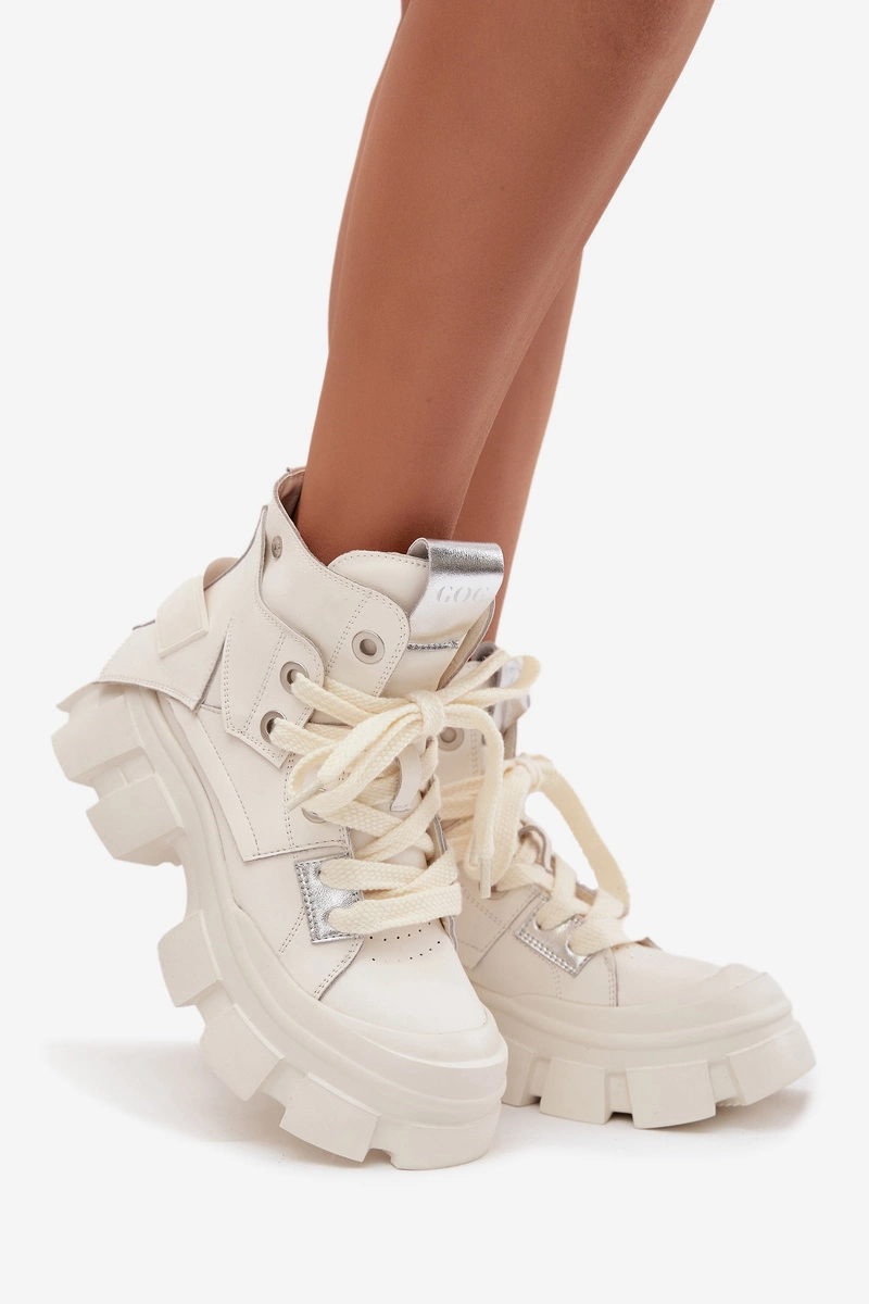 Skórzane Ocieplane Sportowe Botki GOE SS2N4055 Białe
