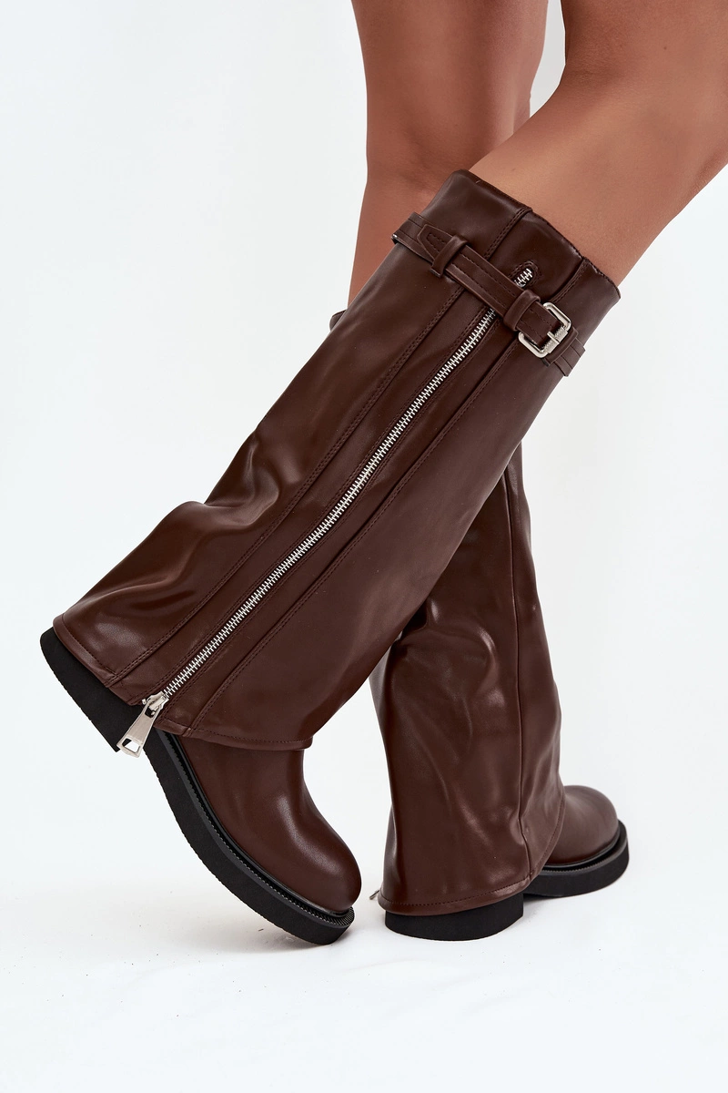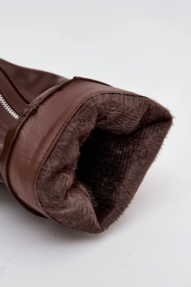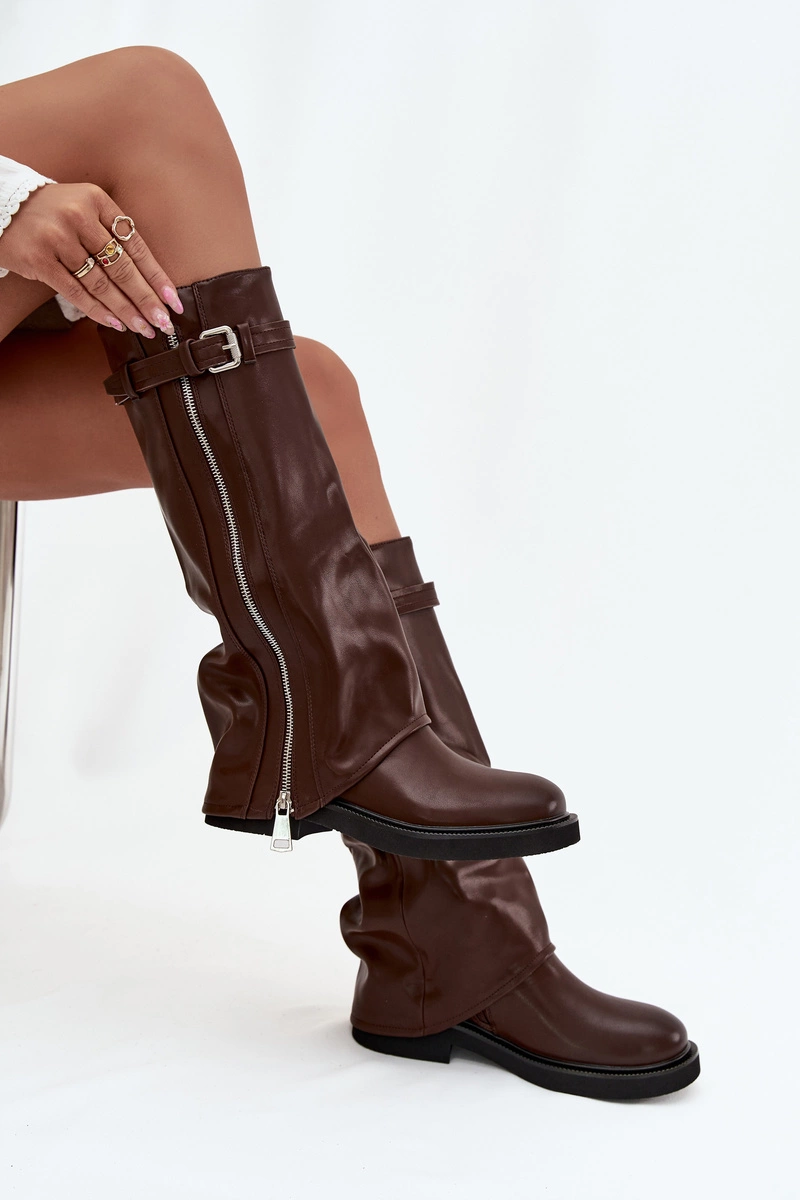 Kozaki Damskie Z Wywiniętą Cholewką Klamrą I Srebrnym Zamkiem Ocieplane Brązowe Bressa