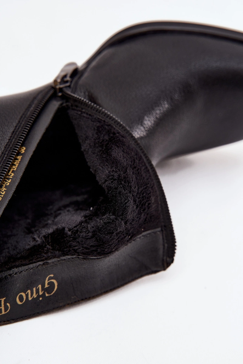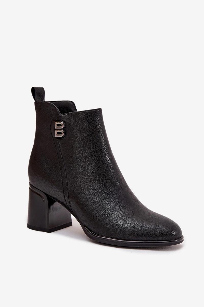 Ocieplane Botki Damskie Z Naturalnej Skóry Na Słupku Czarne Jovelle
