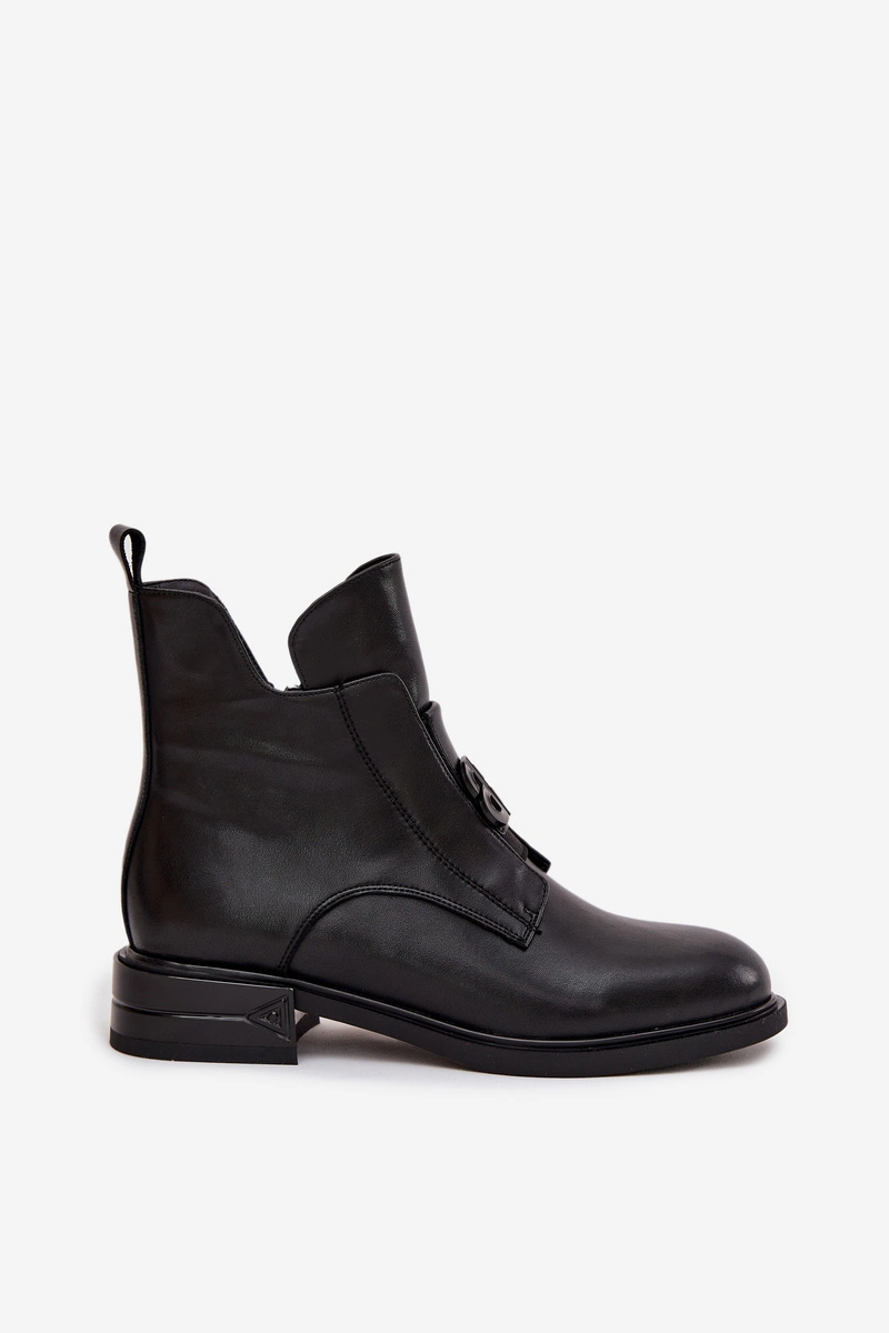 Ocieplane Skórzane Botki Damskie Z Ozdobnym Detalem Czarne Briselda