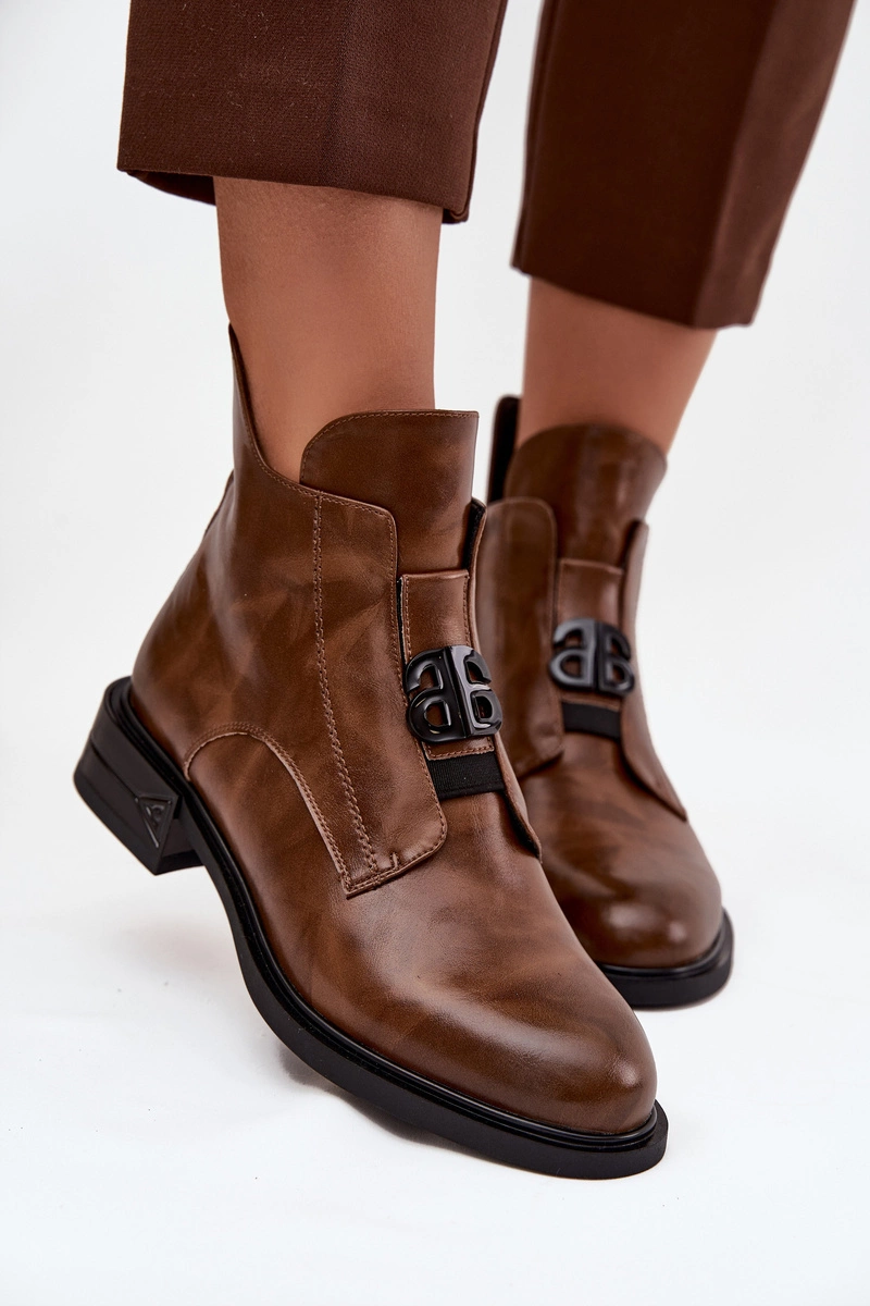 Ocieplane Skórzane Botki Damskie Z Ozdobnym Detalem Brązowe Briselda