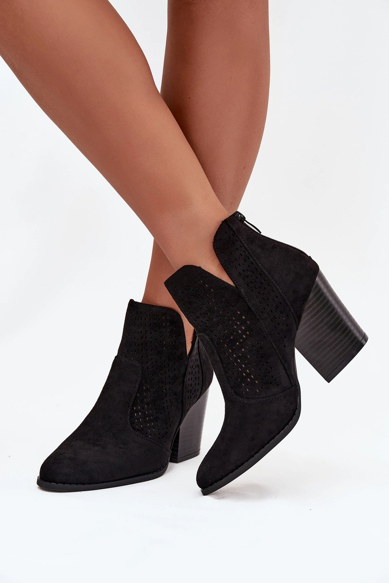 Ażurowe Botki Damskie Na Słupku S.Barski HY51-060 Czarne