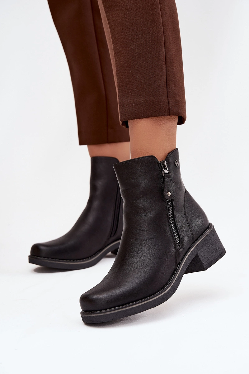Botki Damskie Na Klocku Ocieplane Czarne Kalivana