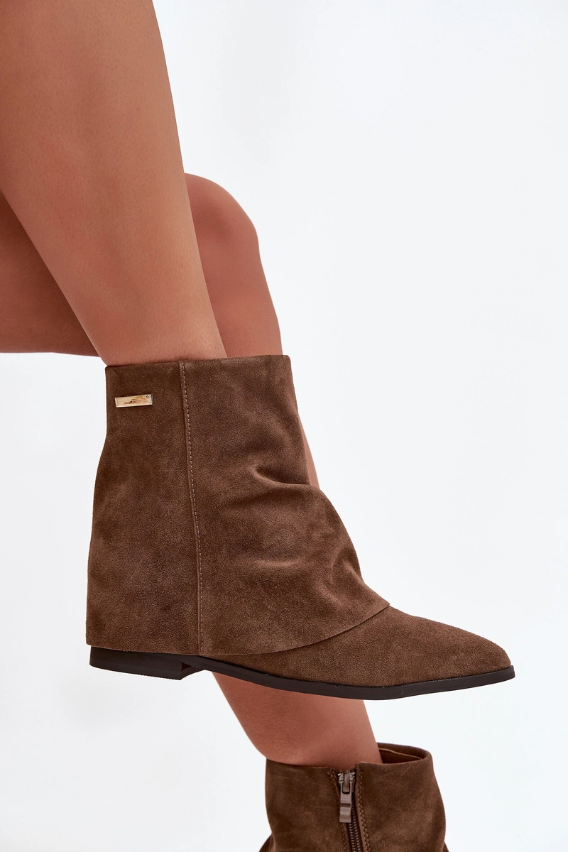 Ocieplane Botki Na Ukrytym Koturnie Z Wywiniętą Cholewką Eko Zamszowe Brązowe Tavella