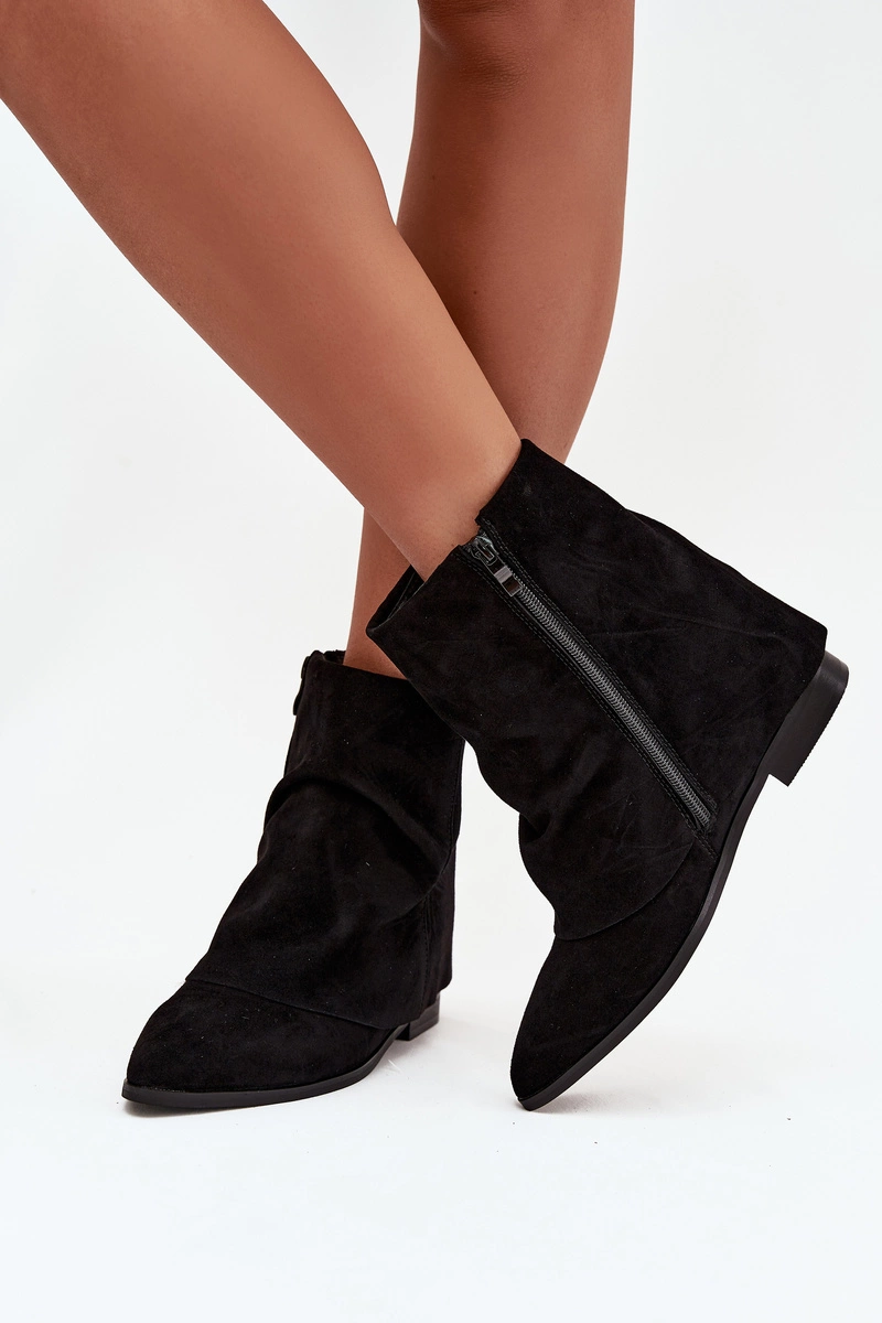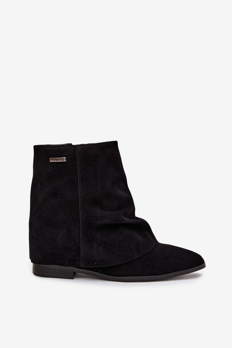 Ocieplane Botki Na Ukrytym Koturnie Z Wywiniętą Cholewką Eko Zamszowe Czarne Tavella
