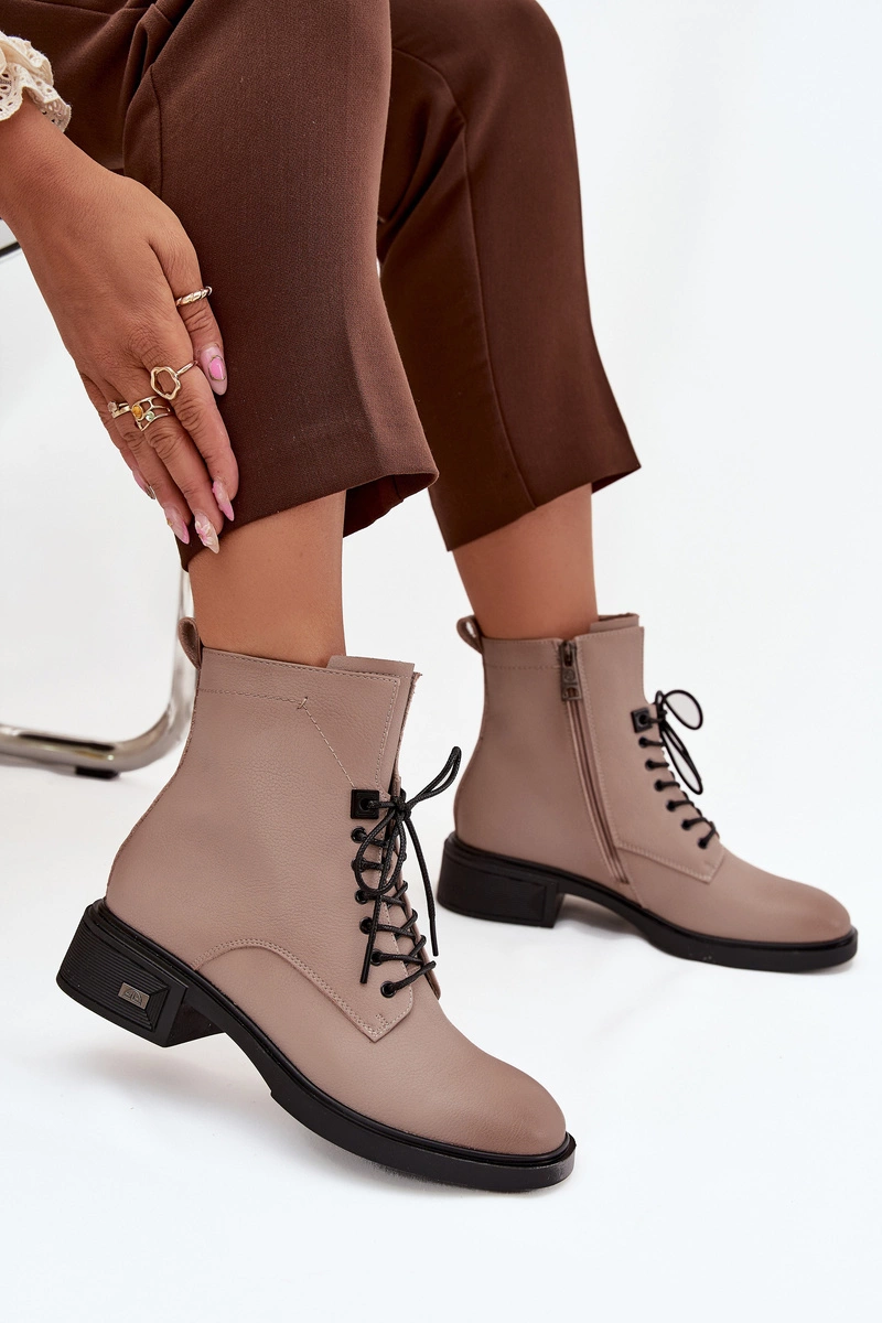 Botki damskie marki Vinceza wykonane z naturalnej skóry to połączenie klasyki i elegancji w codziennym wydaniu. Model osadzony na niskim obcasie gwarantuje wygodę, a połączenie sznurowania z zamkiem ułatwia zakładanie i dopasowanie do stopy. Zaokrąglone noski. Model ten świetnie sprawdzi się w codziennych stylizacjach. Przy wyborze rozmiaru prosimy sugerować się tabelą rozmiarów.