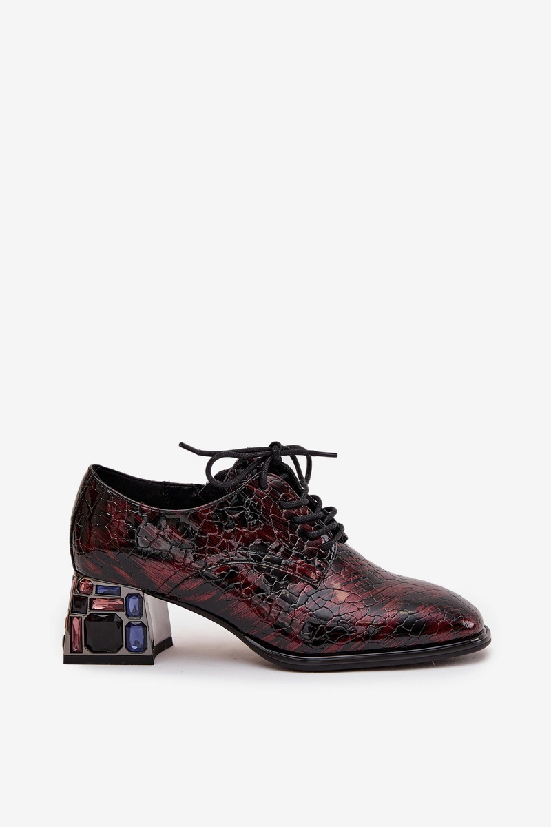 Skórzane Lakierowane Półbuty Damskie Na Obcasie Z Kryształkami Artiker 57C0073 Bordowe