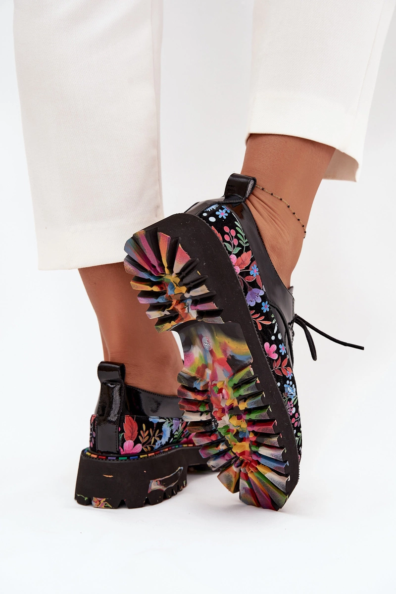 Półbuty damskie marki Artiker wykonane z naturalnej skóry to propozycja, która łączy komfort i wyjątkowy wygląd. Osadzone na platformie z płaskim obcasem gwarantują wygodę podczas codziennego użytkowania, a zaokrąglone noski nadają im klasycznego charakteru. Model ten wyróżnia kwiecisty wzór, który dodaje lekkości i kobiecego uroku. Dzięki starannemu wykonaniu i ponadczasowemu fasonowi półbuty świetnie sprawdzą się zarówno w casualowych stylizacjach, jak i w bardziej eleganckich zestawach. To obuwie, które podkreśli indywidualny styl i zapewni wygodę każdego dnia. Przy wyborze rozmiaru prosimy sugerować się tabelą rozmiarów.