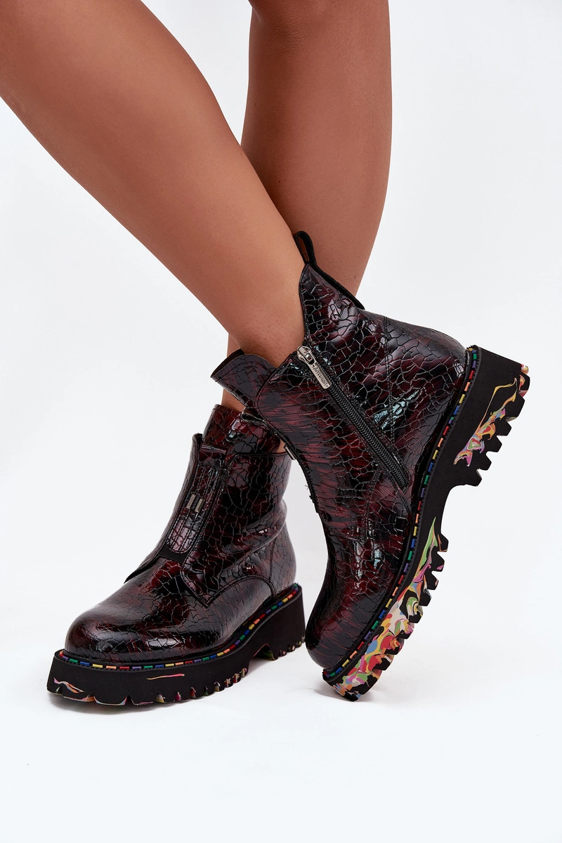 Lakierowane Botki Damskie Z Naturalnej Skóry Ocieplane Artiker 57C0165 Bordowe