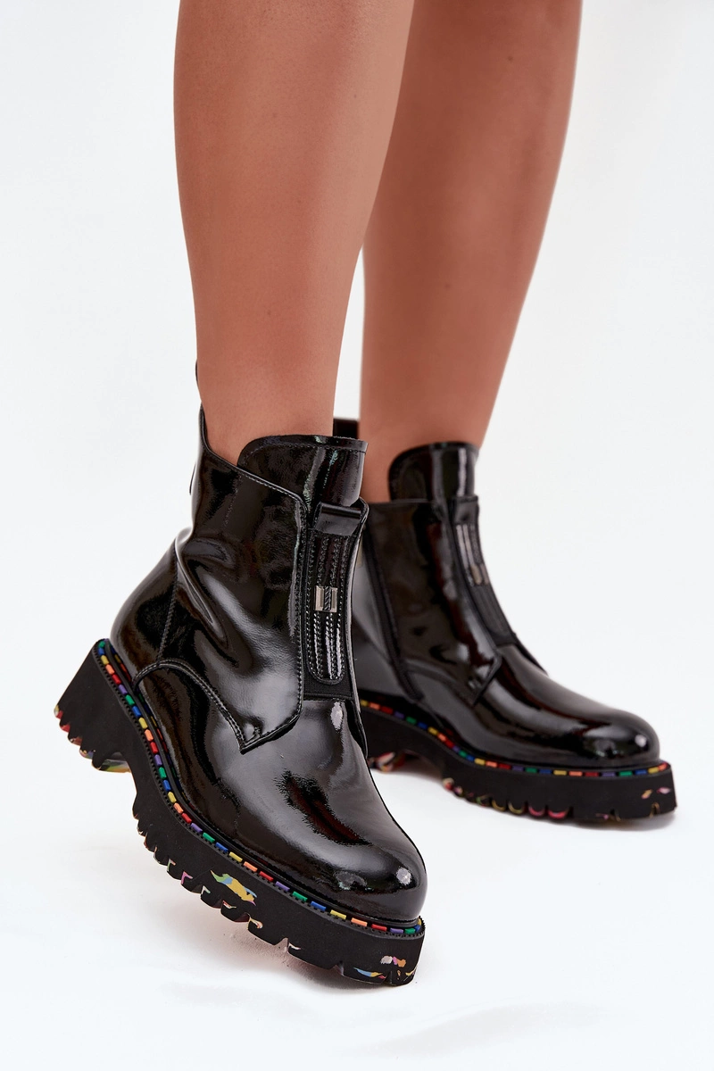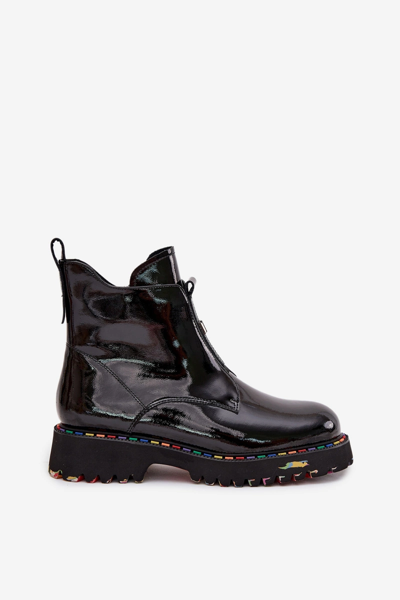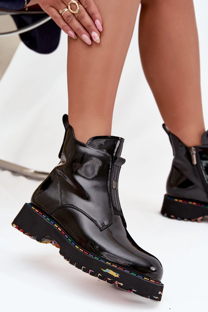 Lakierowane Botki Damskie Z Naturalnej Skóry Ocieplane Artiker 57C0166 Czarne