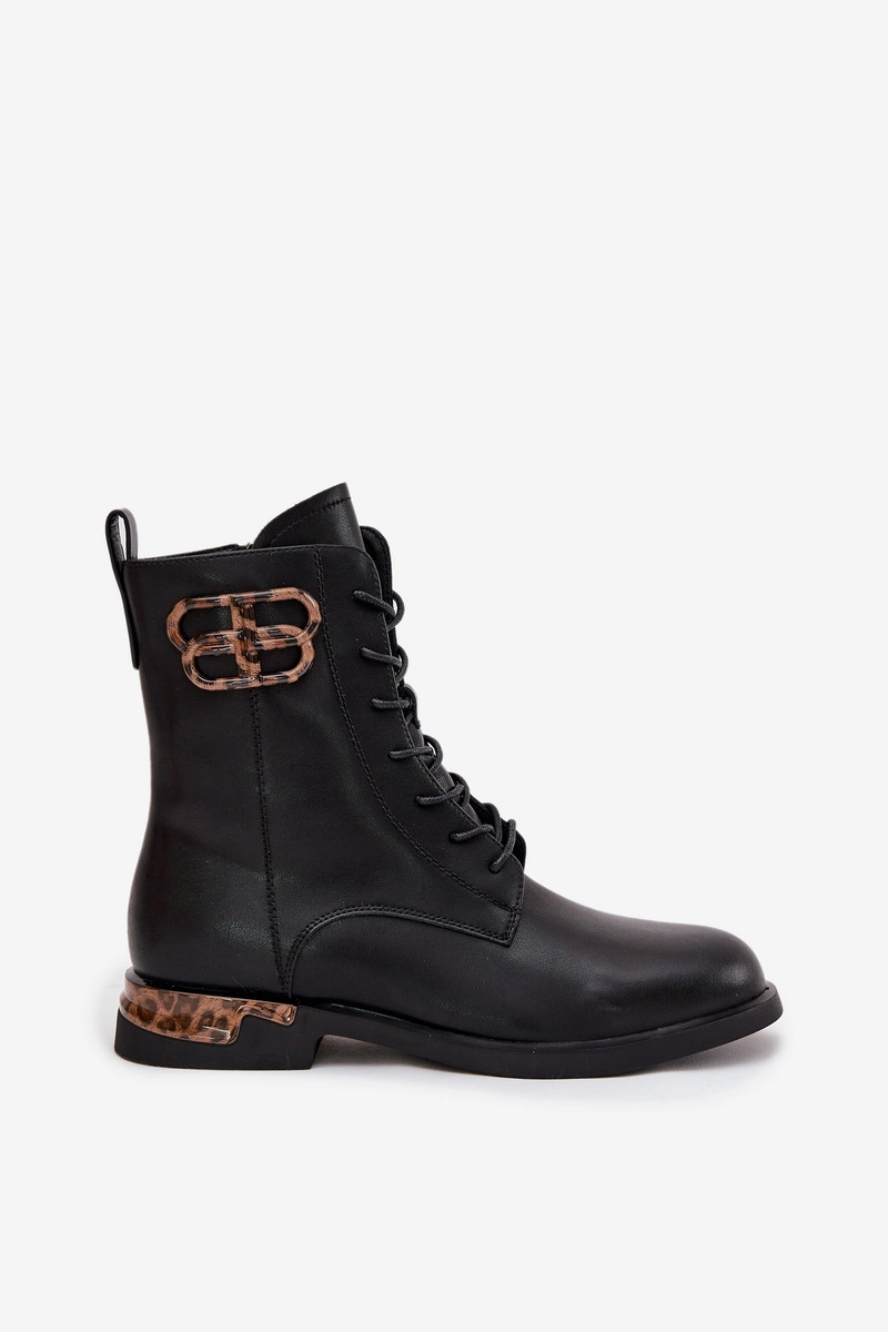 Skórzane Botki Damskie Na Płaskim Obcasie Z Ozdobą Ocieplane Artiker 57C1064 Czarne