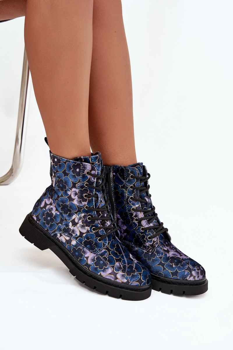 Botki Damskie Ocieplane W Kwiaty Artiker 57C1052 Granatowe