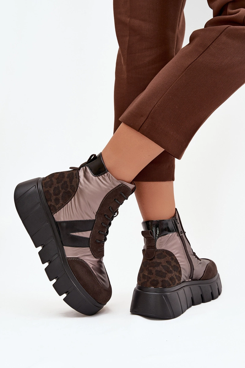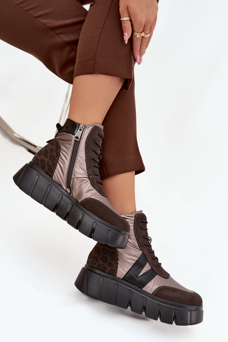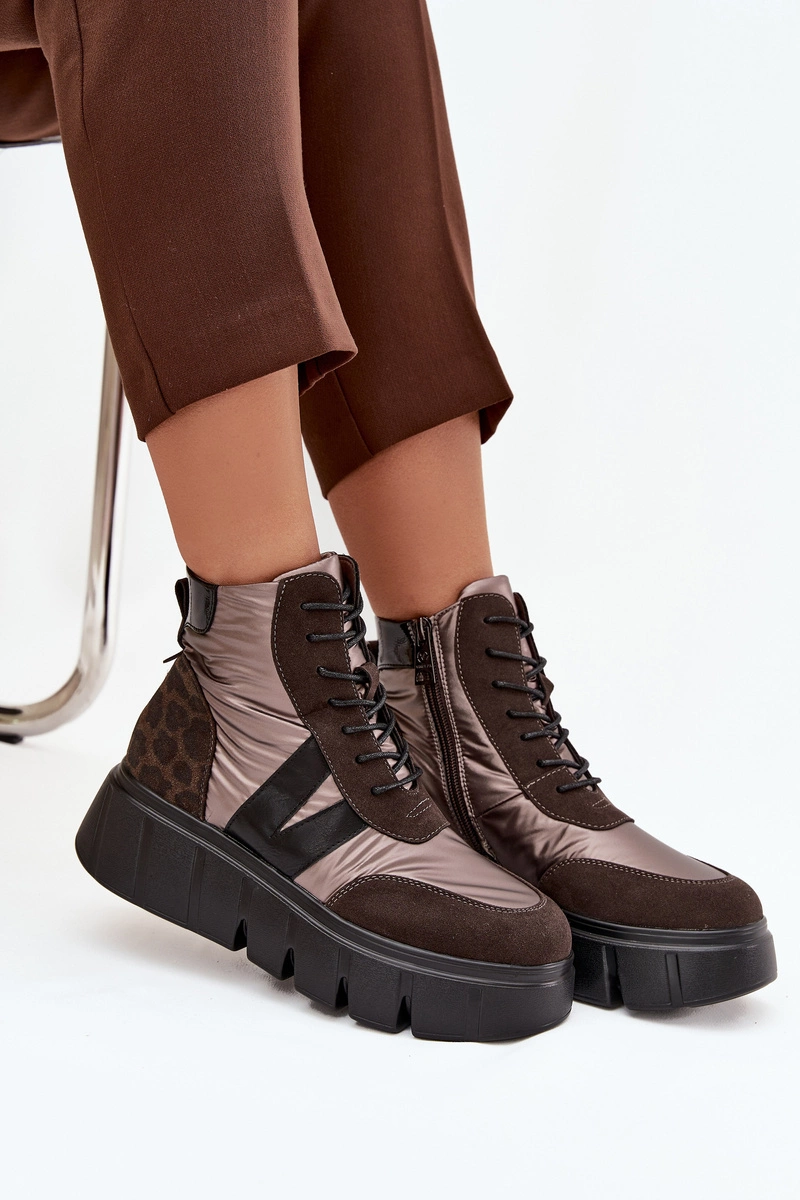Botki Damskie Ocieplane Na Platformie Vinceza 58562 Brązowe