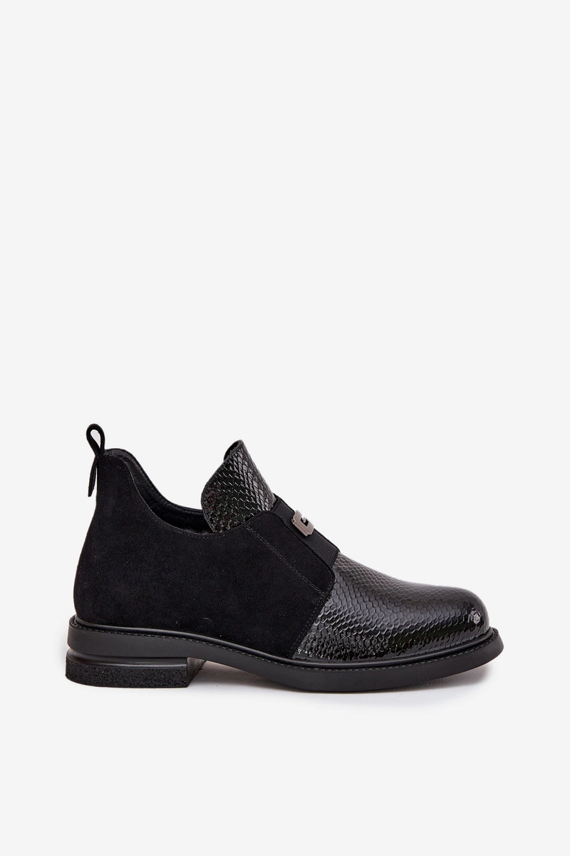 Lakierowane Niskie Botki Damskie Na Obcasie Ocieplane Vinceza 58560 Czarne