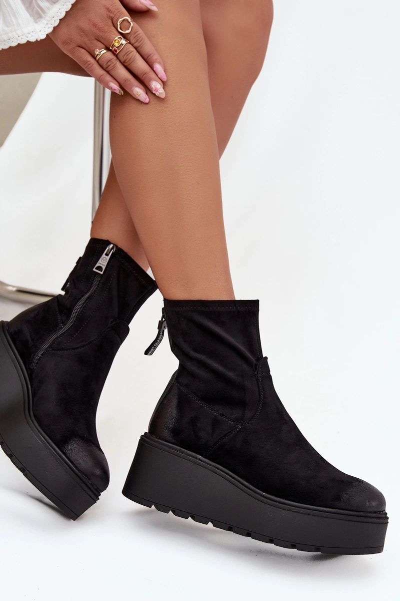 Botki Damskie Na Platformie Ocieplane Vinceza 58596 Czarne