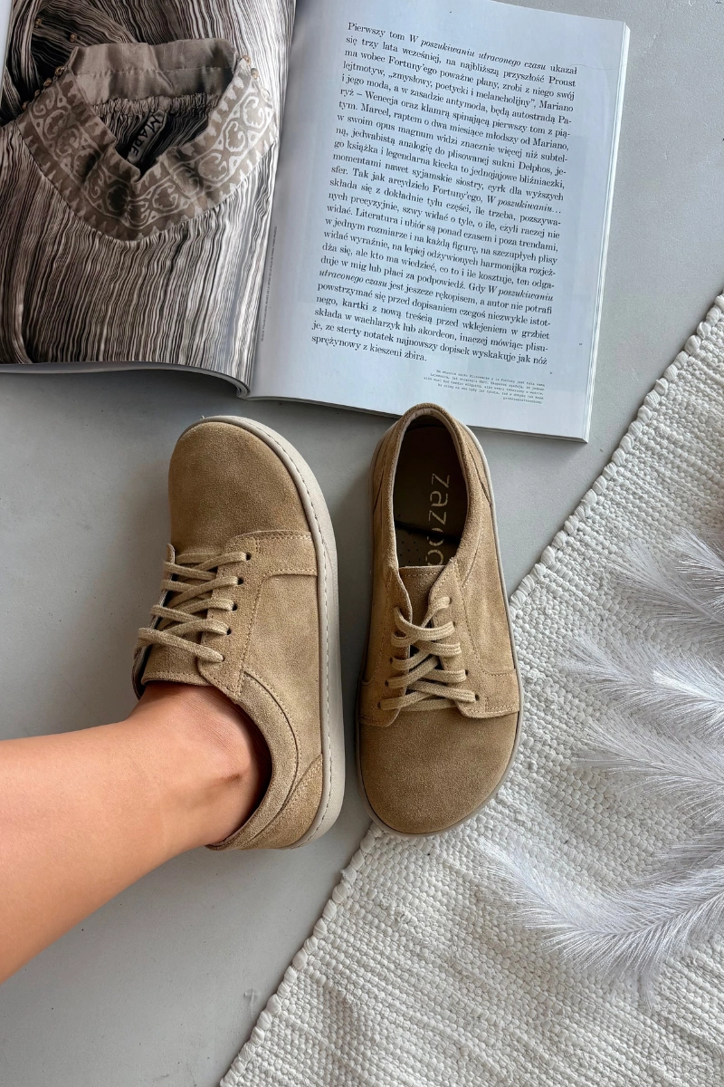 Trampki Typu Barefoot Z Naturalnego Zamszu Zazoo 314 Beżowe