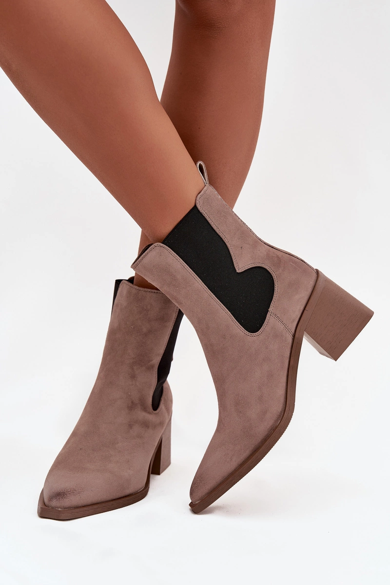 Skórzane Zamszowe Botki Damskie Na Słupku Ocieplane Artiker 57C0045 Beżowe