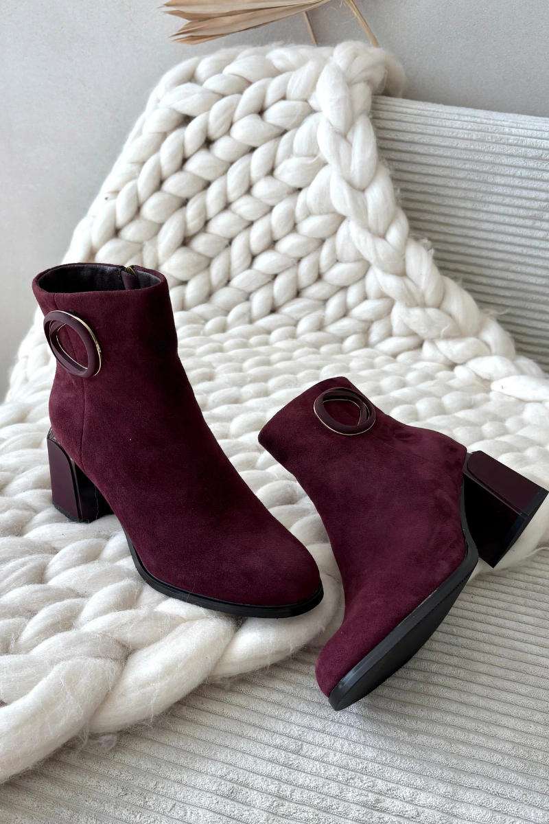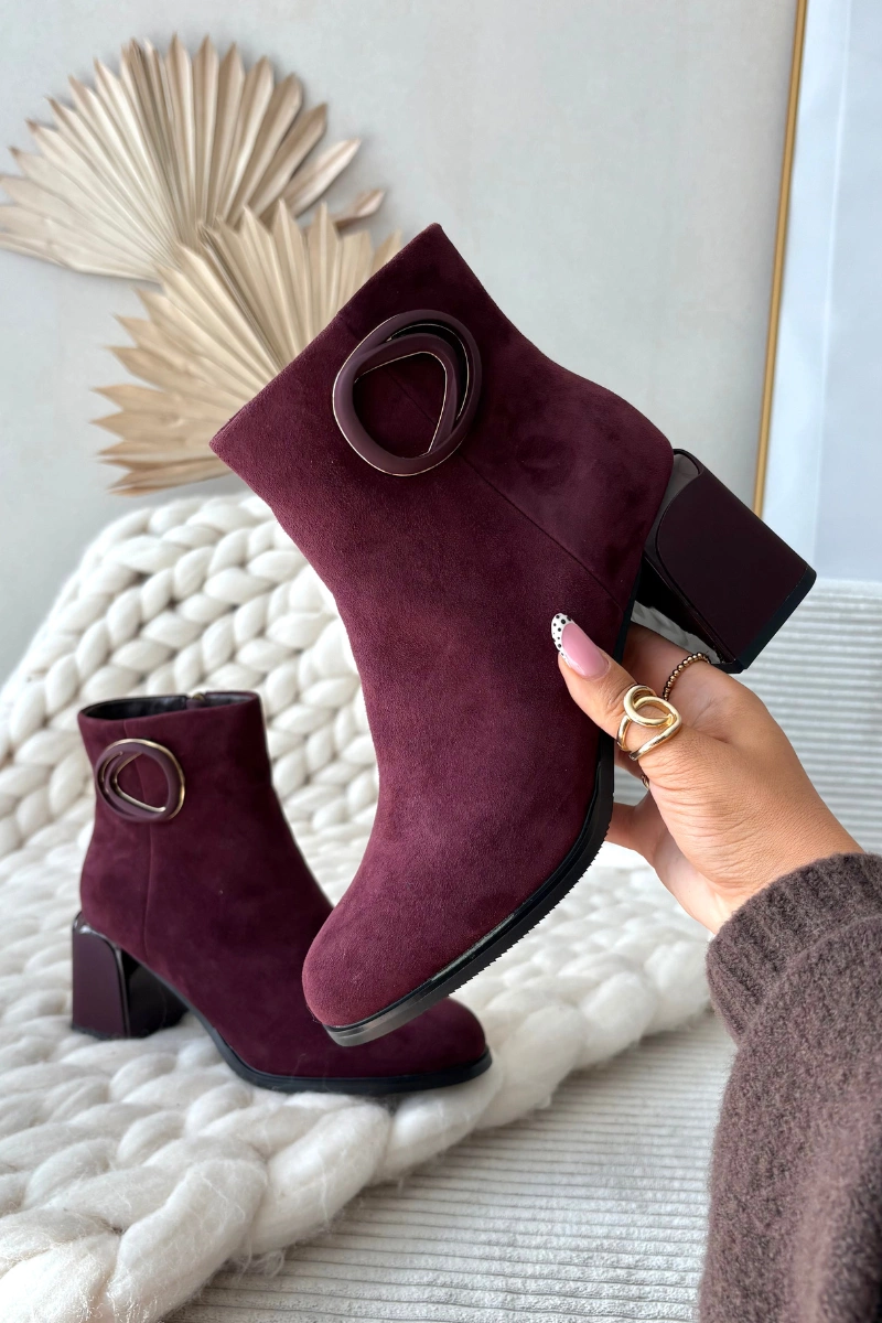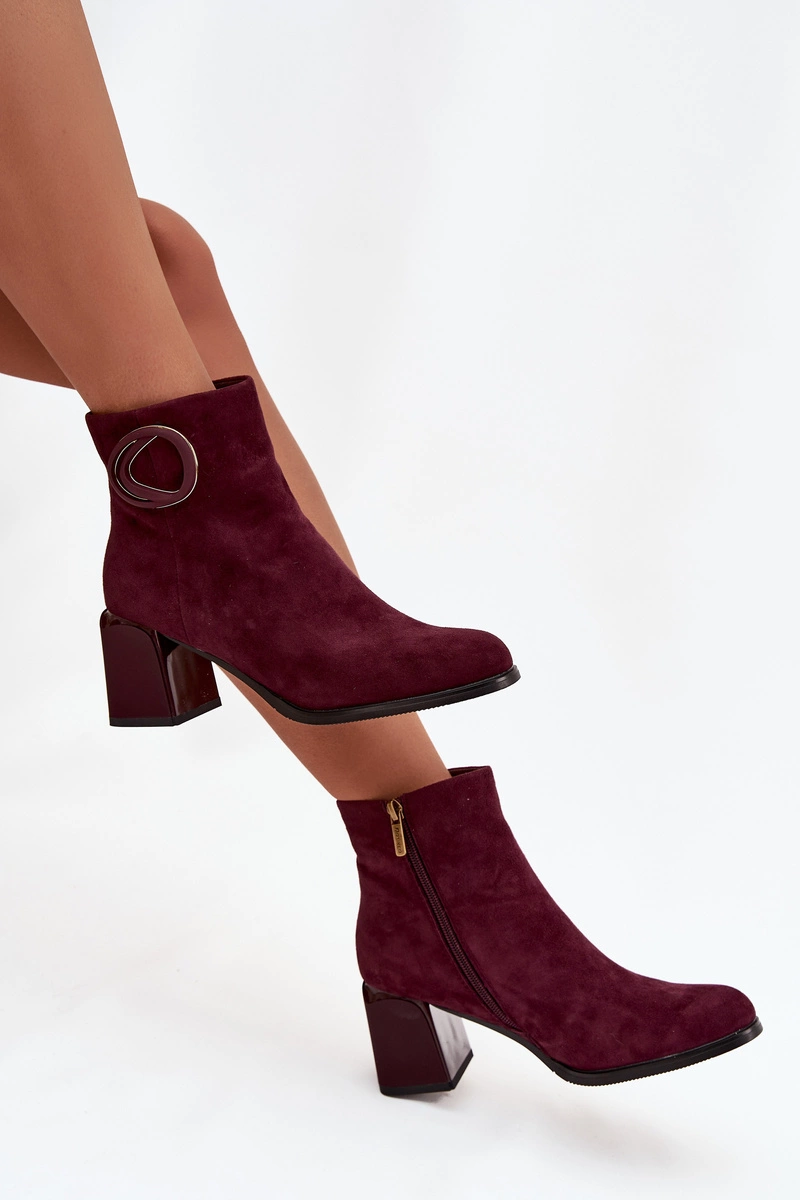Zamszowe Botki Na Słupku Ocieplane Z Ozdobnym Detalem Artiker 57C0016 Bordowe