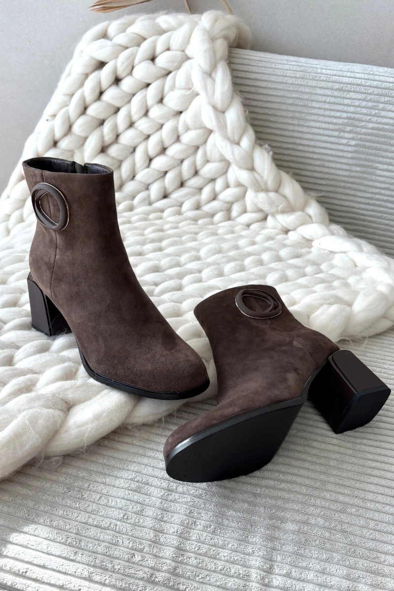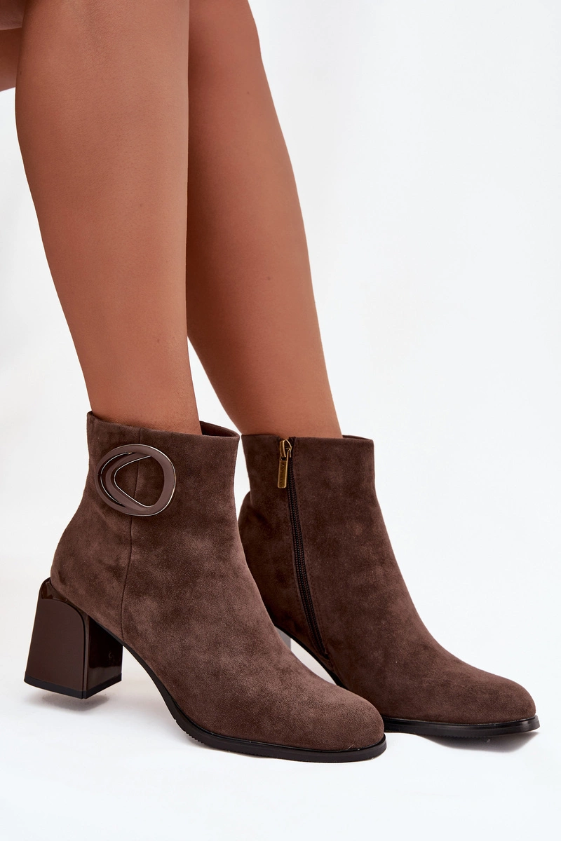 Zamszowe Botki Na Słupku Ocieplane Z Ozdobnym Detalem Artiker 57C0017 Brązowe