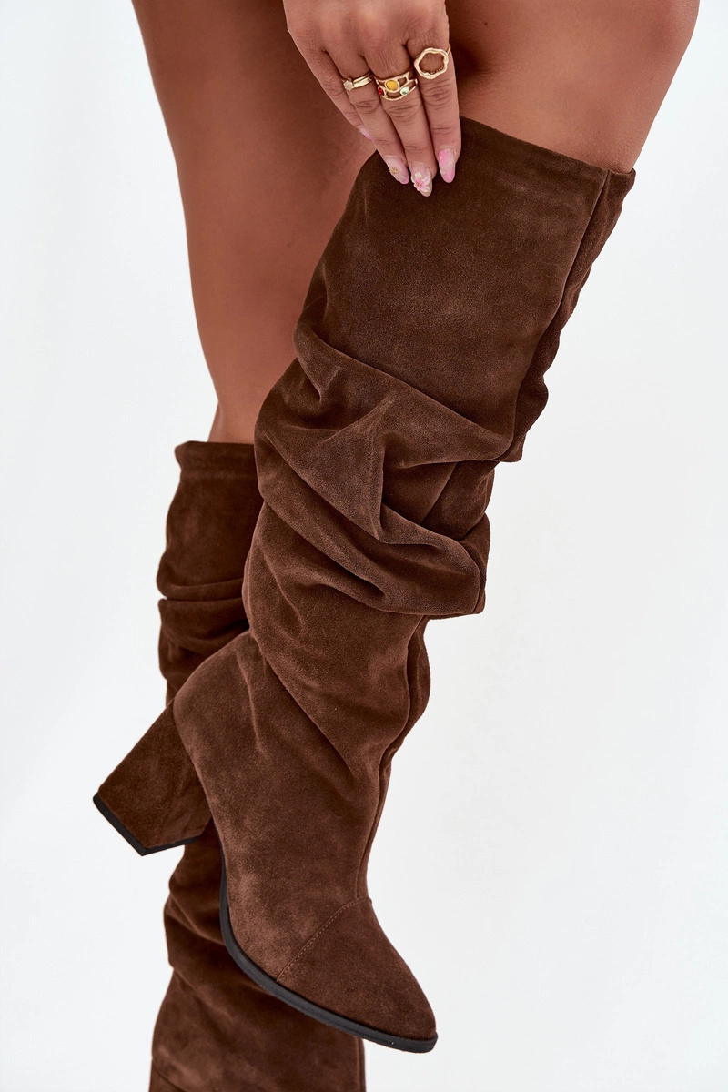 Marszczone Kozaki Z Naturalnego Zamszu Na Słupku Ocieplane Zazoo 4228 Brązowe