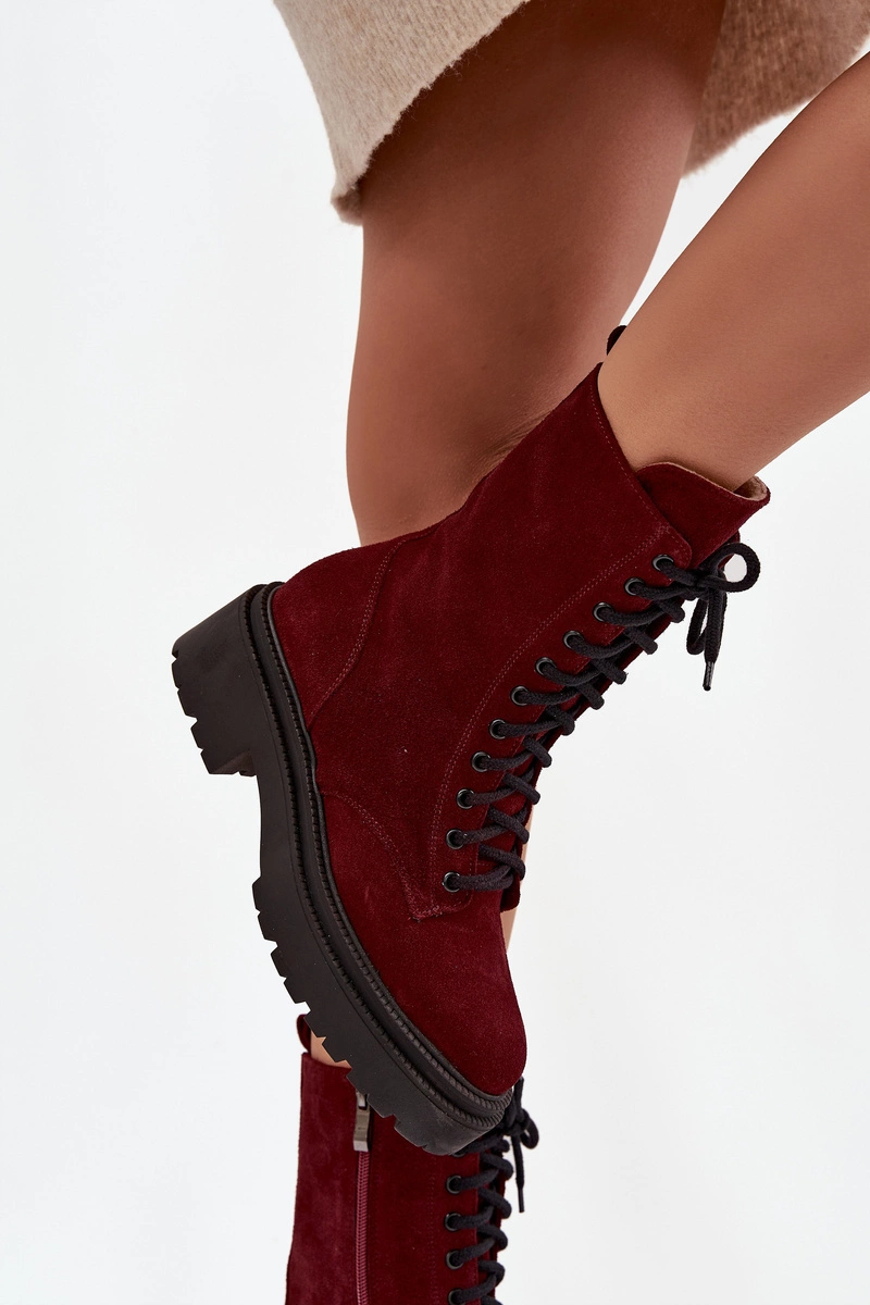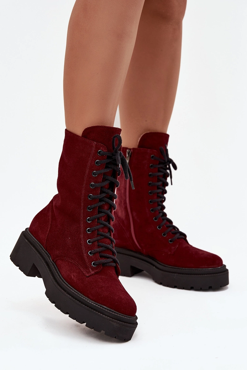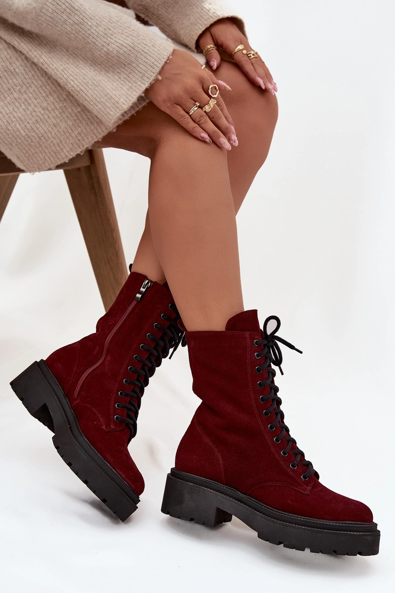 Botki Workery Damskie Z Naturalnego Zamsz Ocieplane Zazoo 4213 Bordowe
