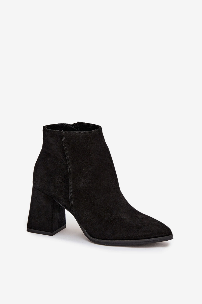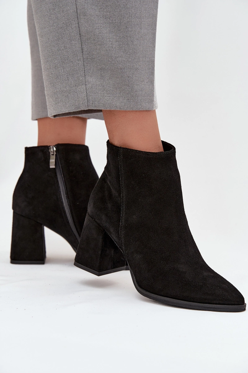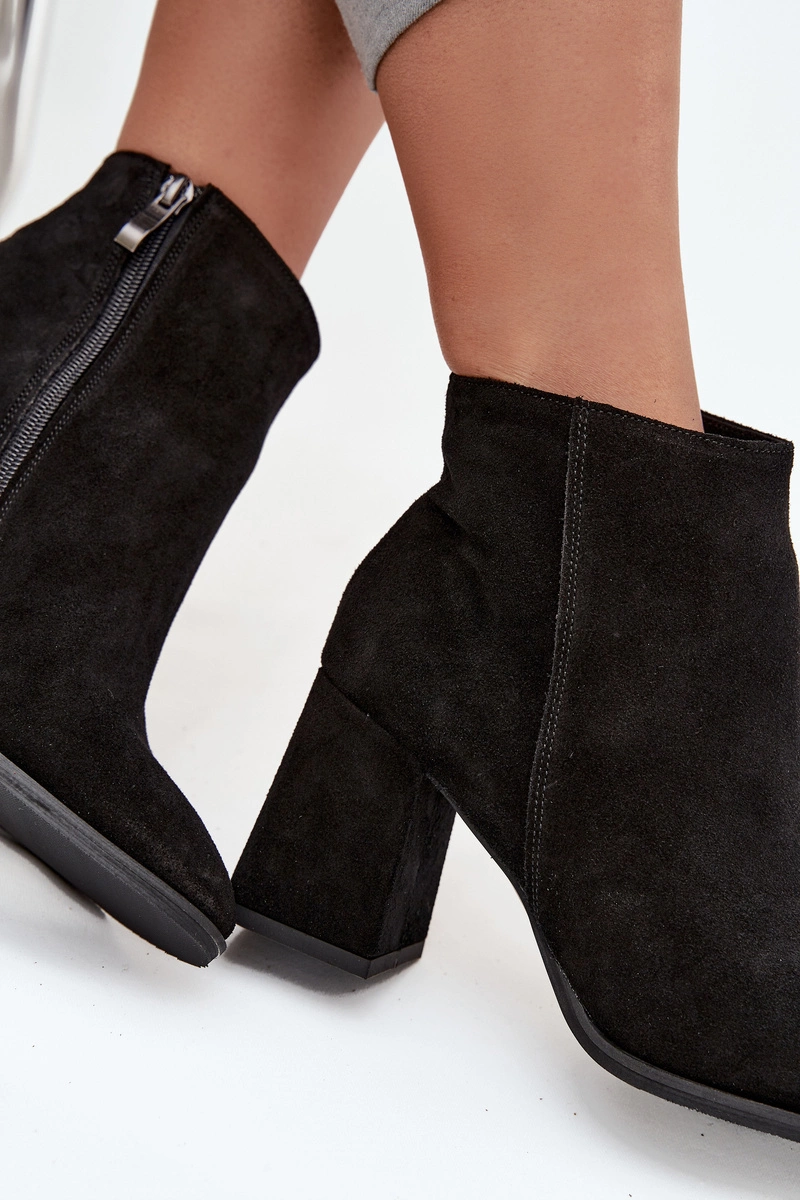 Botki Z Naturalnego Zamszu Obcas Słupek Ocieplane Czarne Zazoo 3128