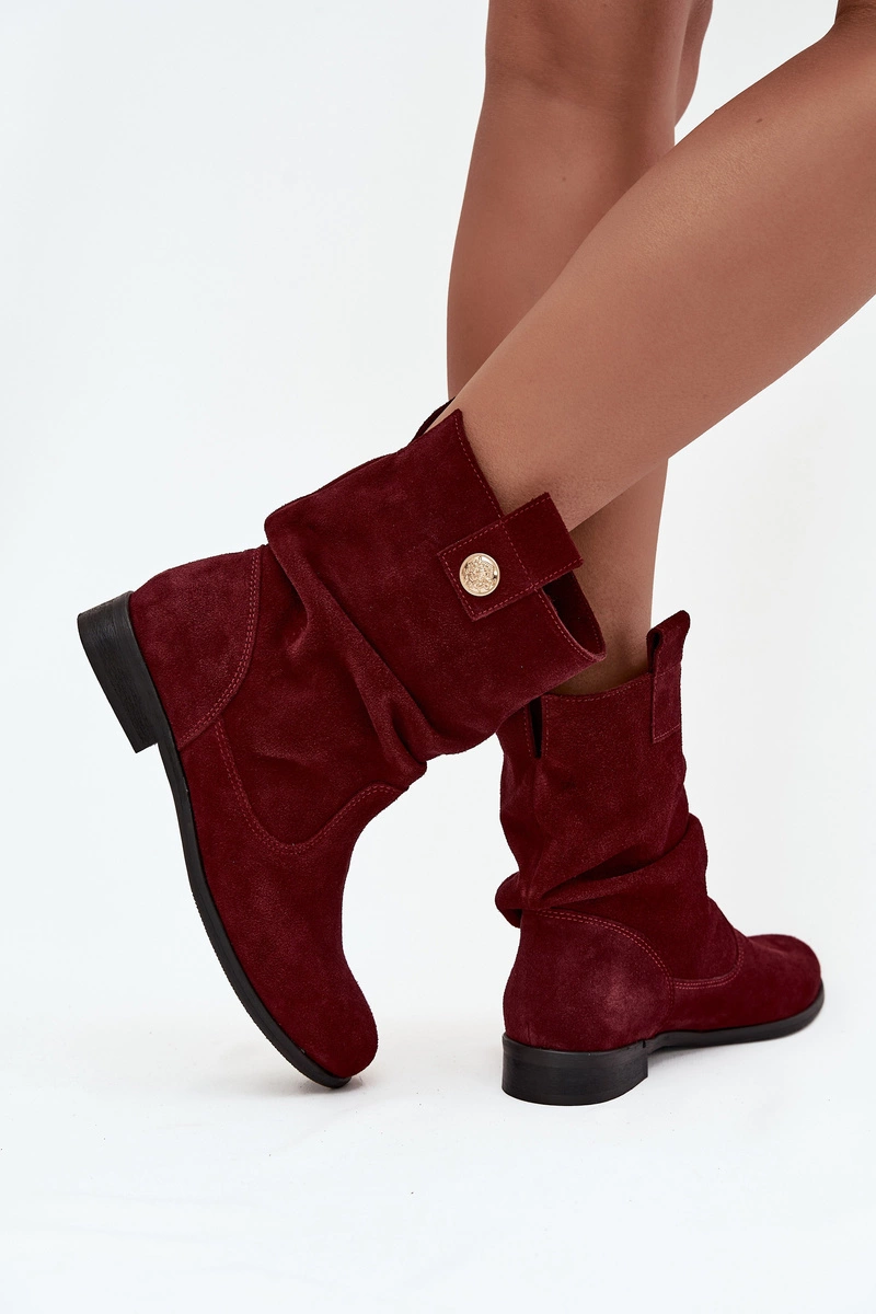 Skórzane Zamszowe Botki Damskie Z Marszczeniem Ocieplane Zazoo 4210 Bordowe