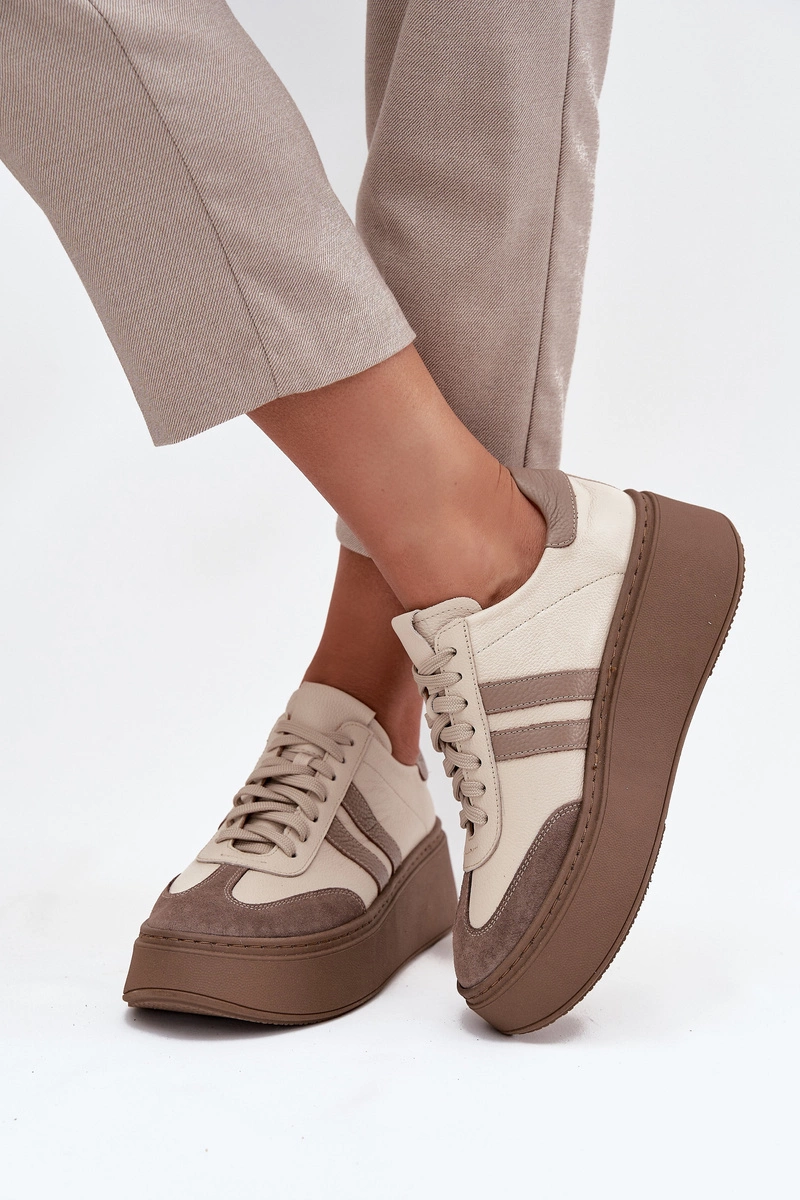 Skórzane Sneakersy Damskie Na Platformie Zazoo 3775 Beżowe