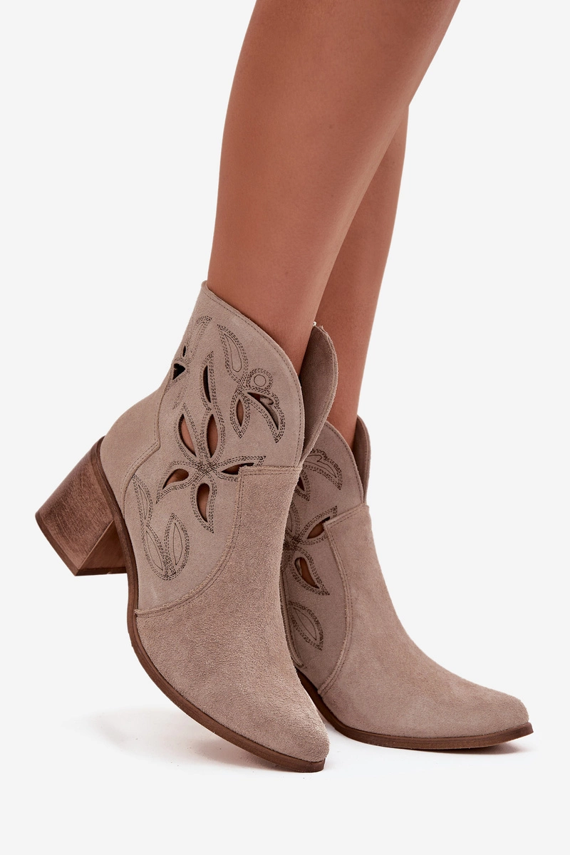Botki Damskie Ażurowe Z Naturalnego Zamszu Na Słupku Zazoo 3690 Beżowe