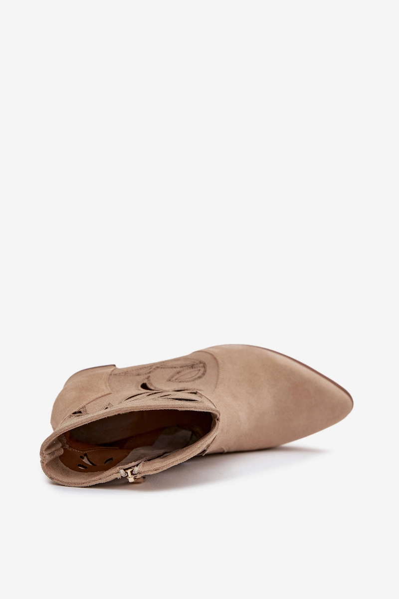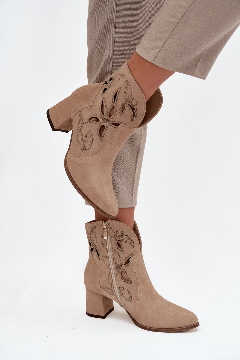 Zamszowe Ażurowe Botki Damskie Na Słupku Zazoo 3647 Beżowe