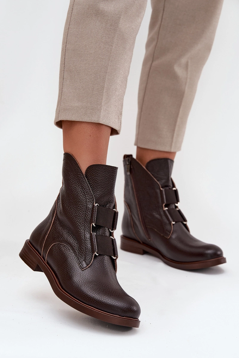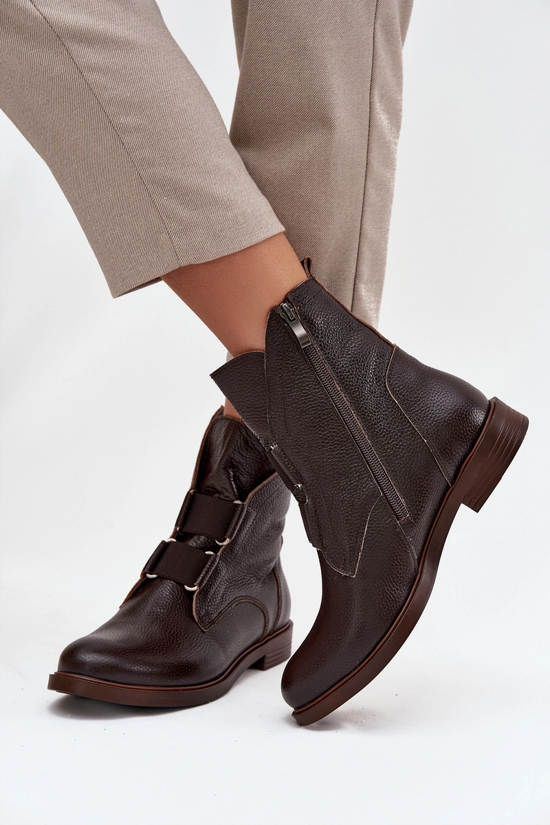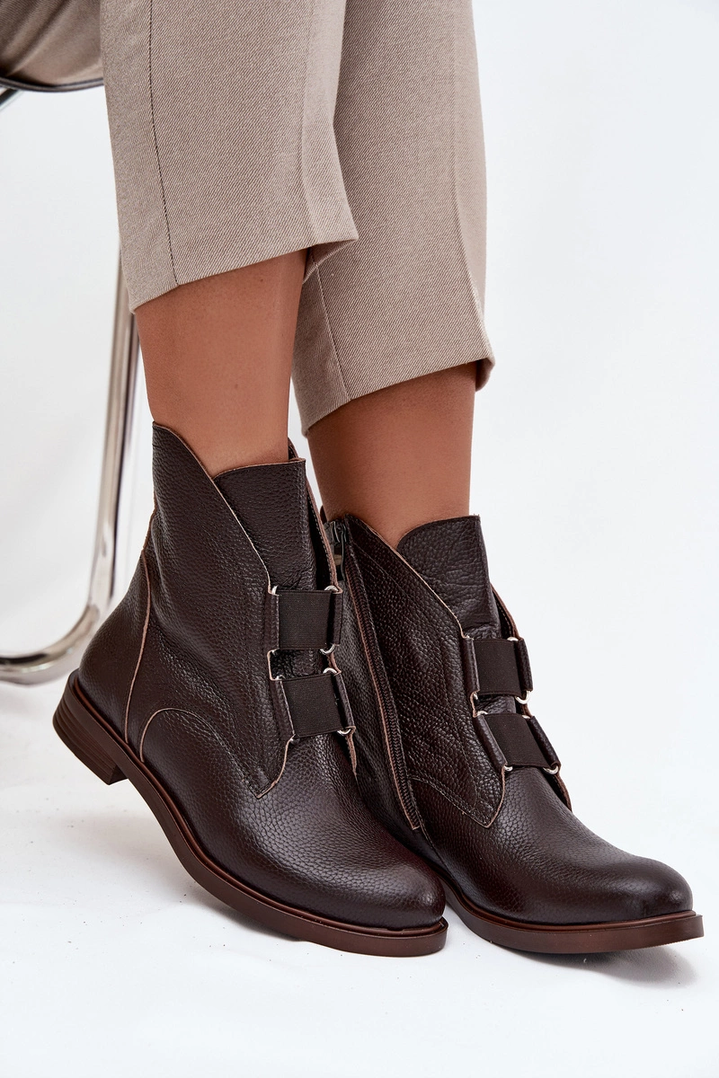 Botki Damskie Z Naturalnej Skóry Na Płaskim Obcasie Zazoo 3842 Czekoladowe