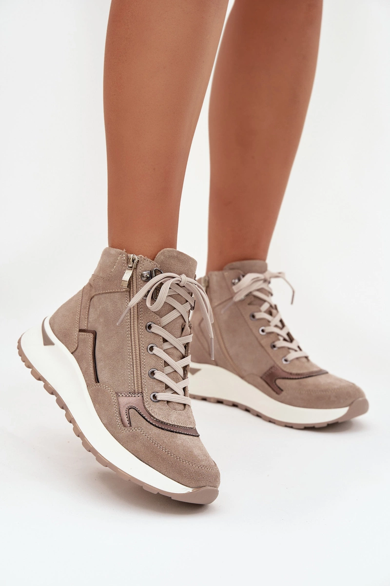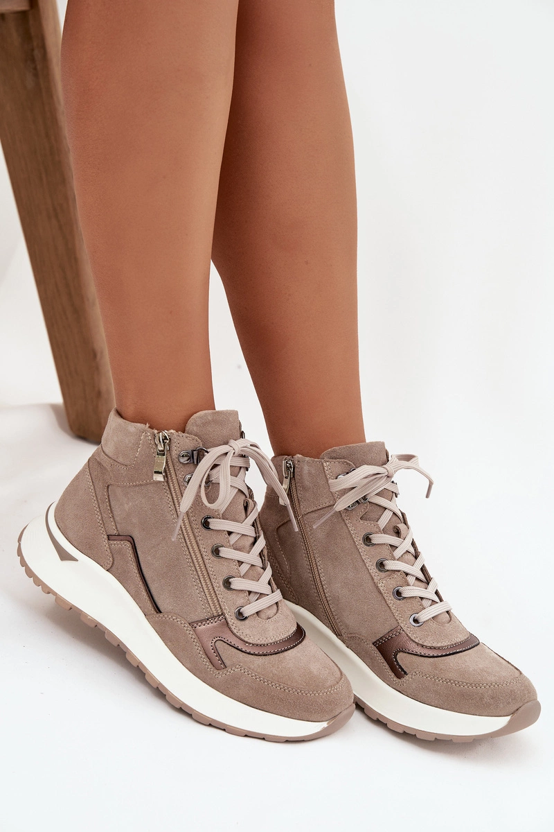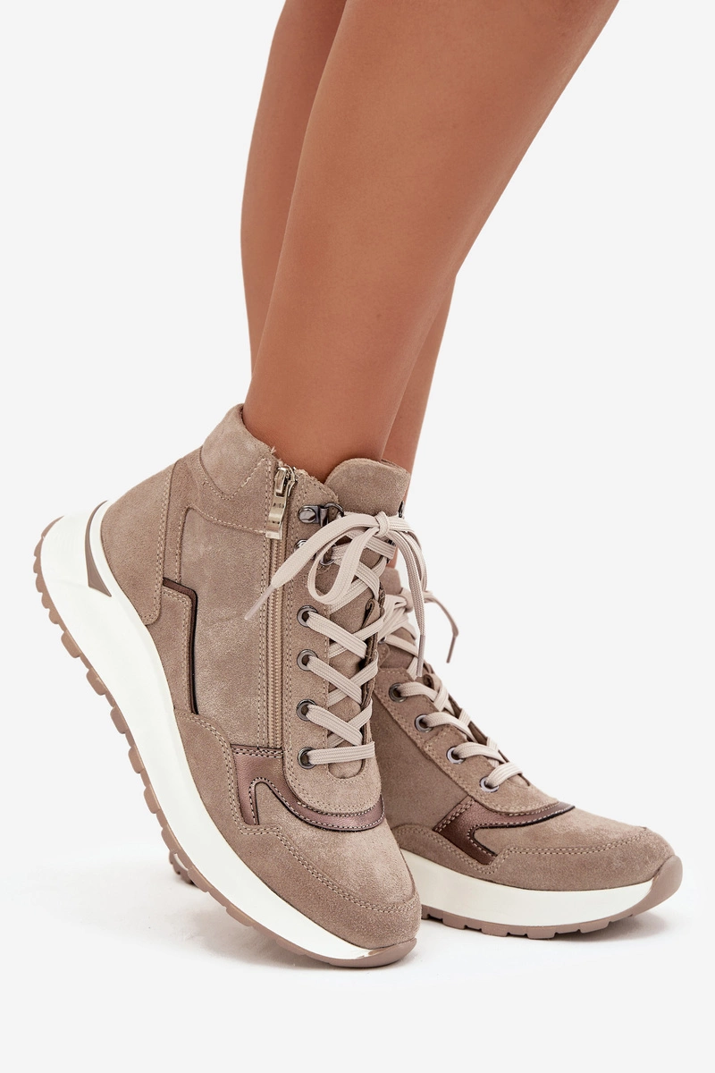 Botki Sportowe Damskie Na Platformie Z Naturalnego Zamszu Zazoo Z1239 Beżowe