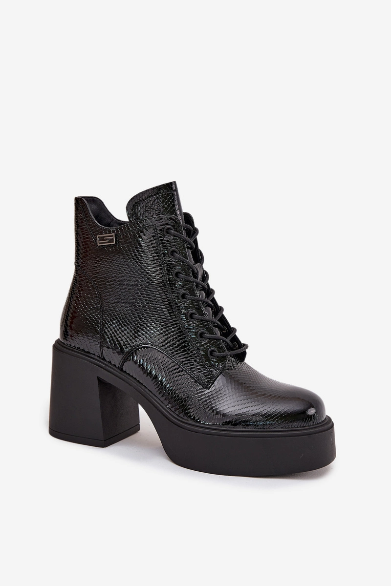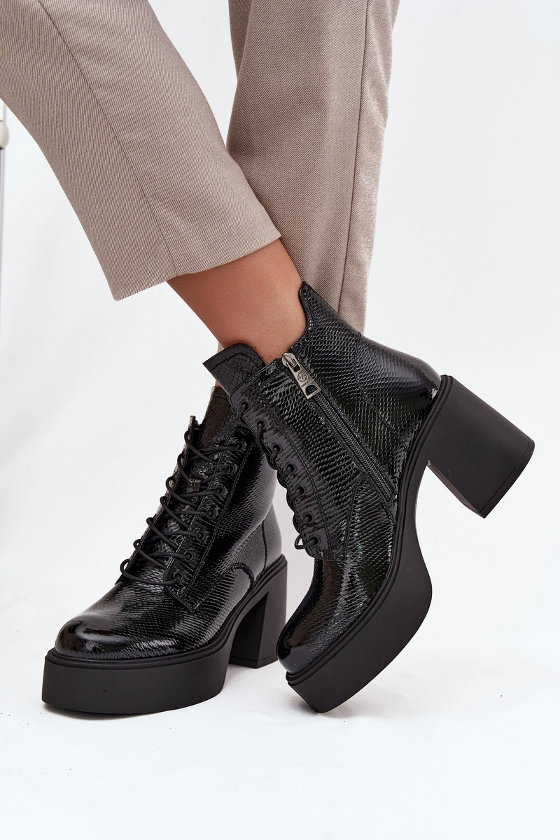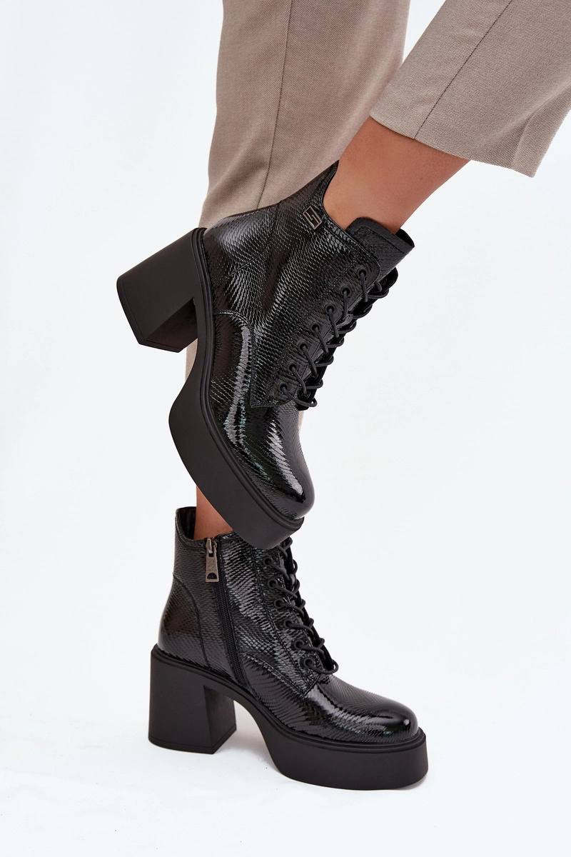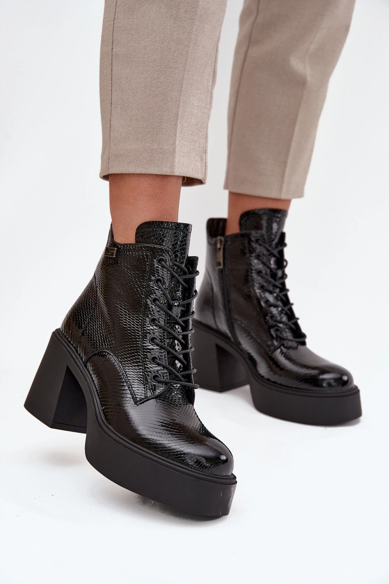 Lakierowane Skórzane Botki Damskie Na Platformie I Słupku Vinceza 66817 Czarne