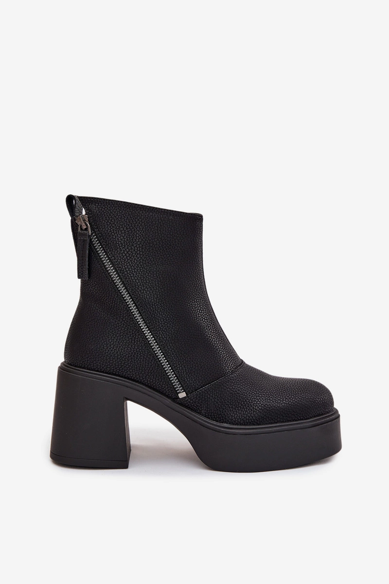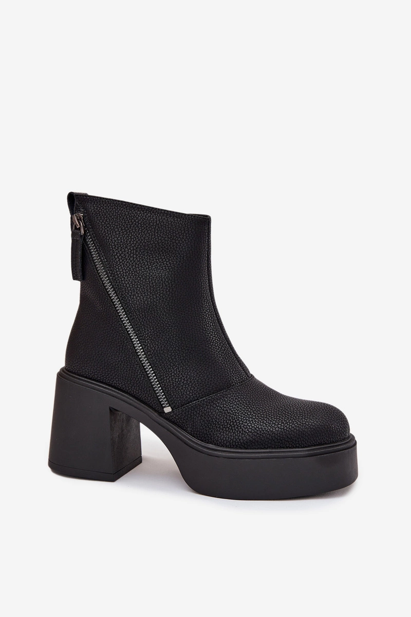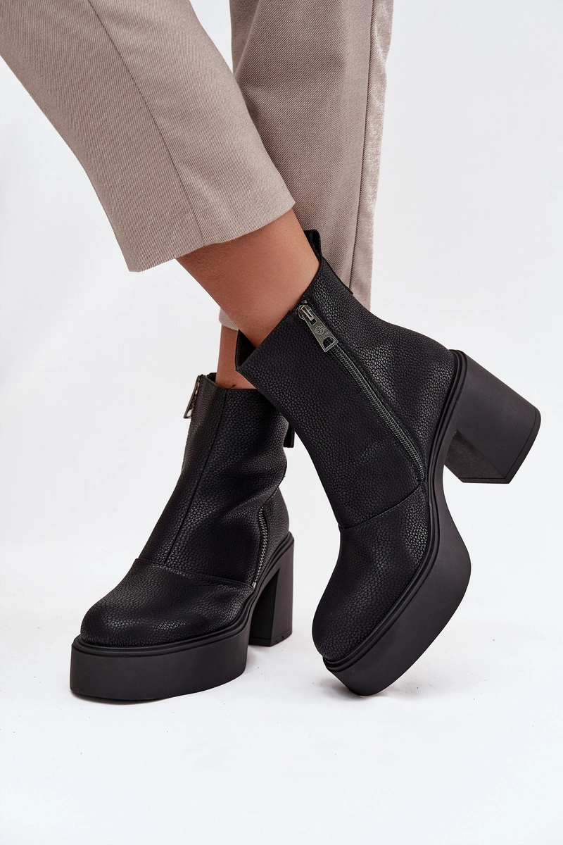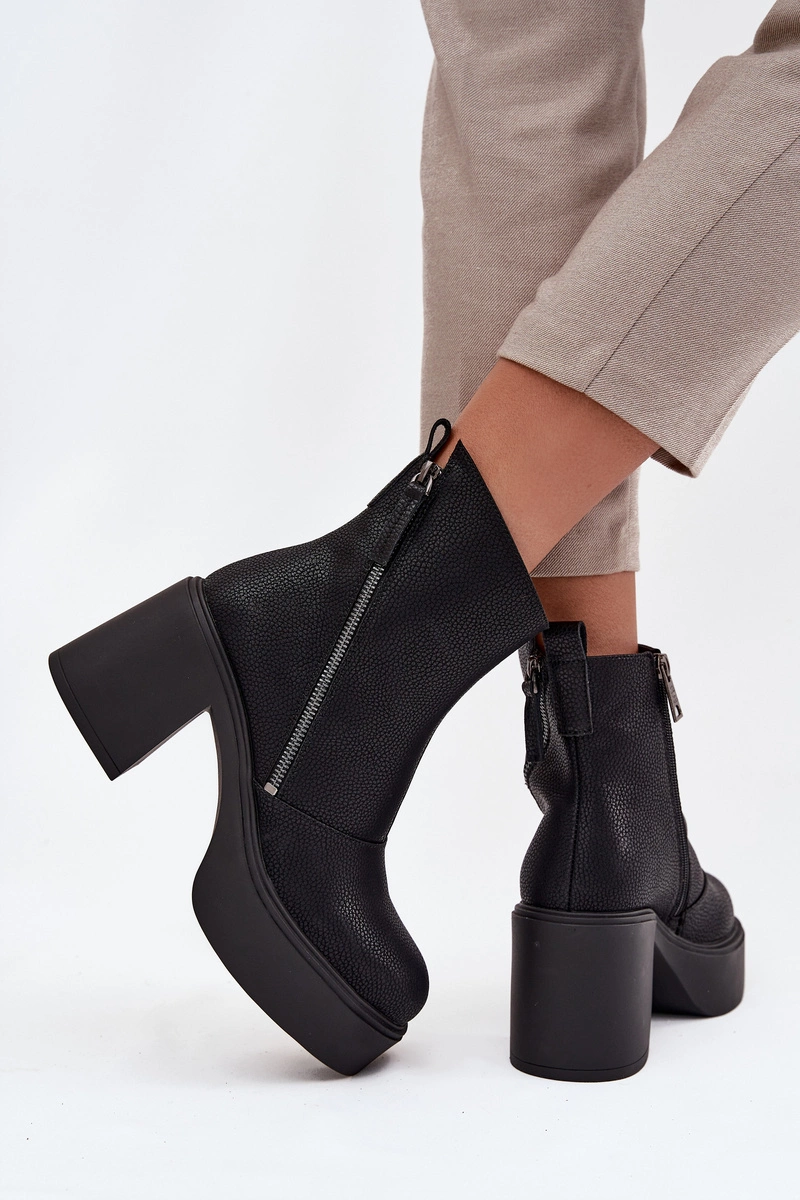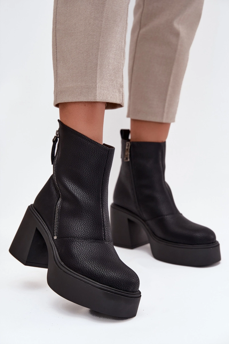 Skórzane Ocieplane Botki Damskie Na Słupku I Platformie Vinceza 66831 Czarne