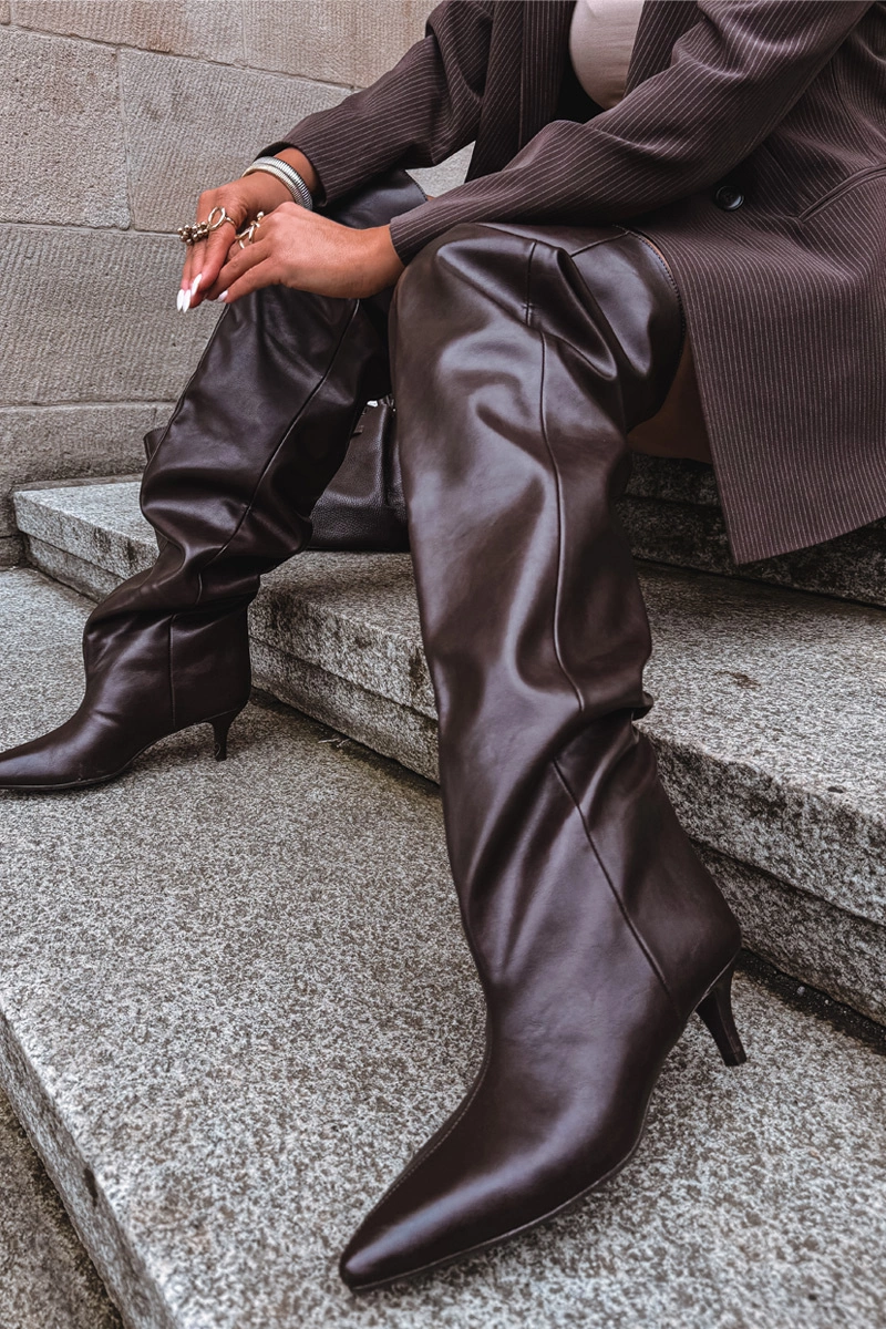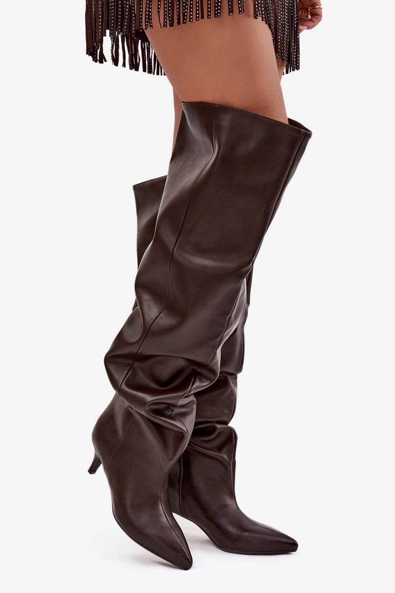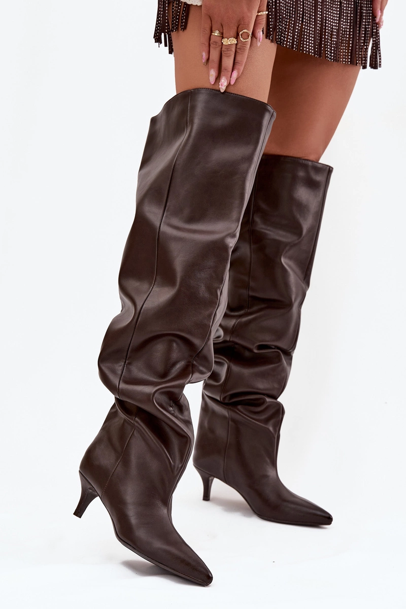 Wsuwane Kozaki Damskie Na Szpilce Czekoladowe Ysolienne