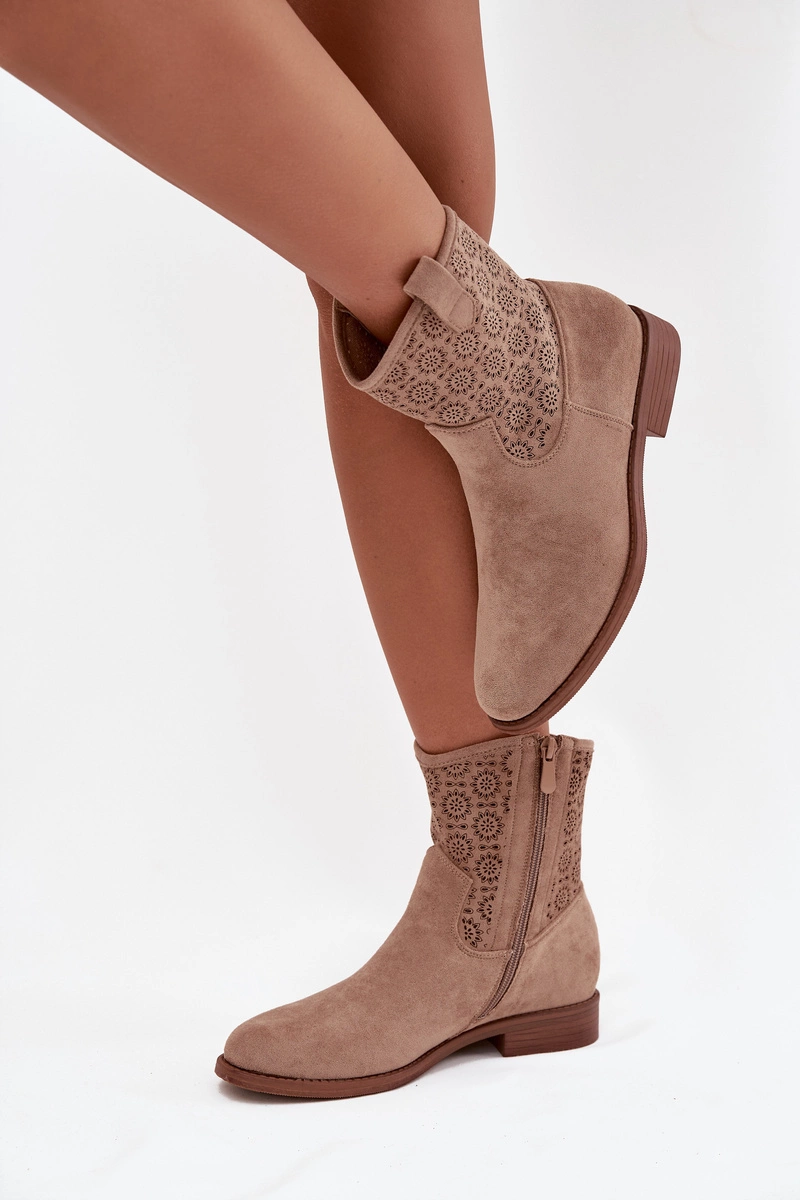 Botki Damskie Na Płaskim Obcasie Z Ażurowym Wzorem S.Barski HY52-530 Beżowe