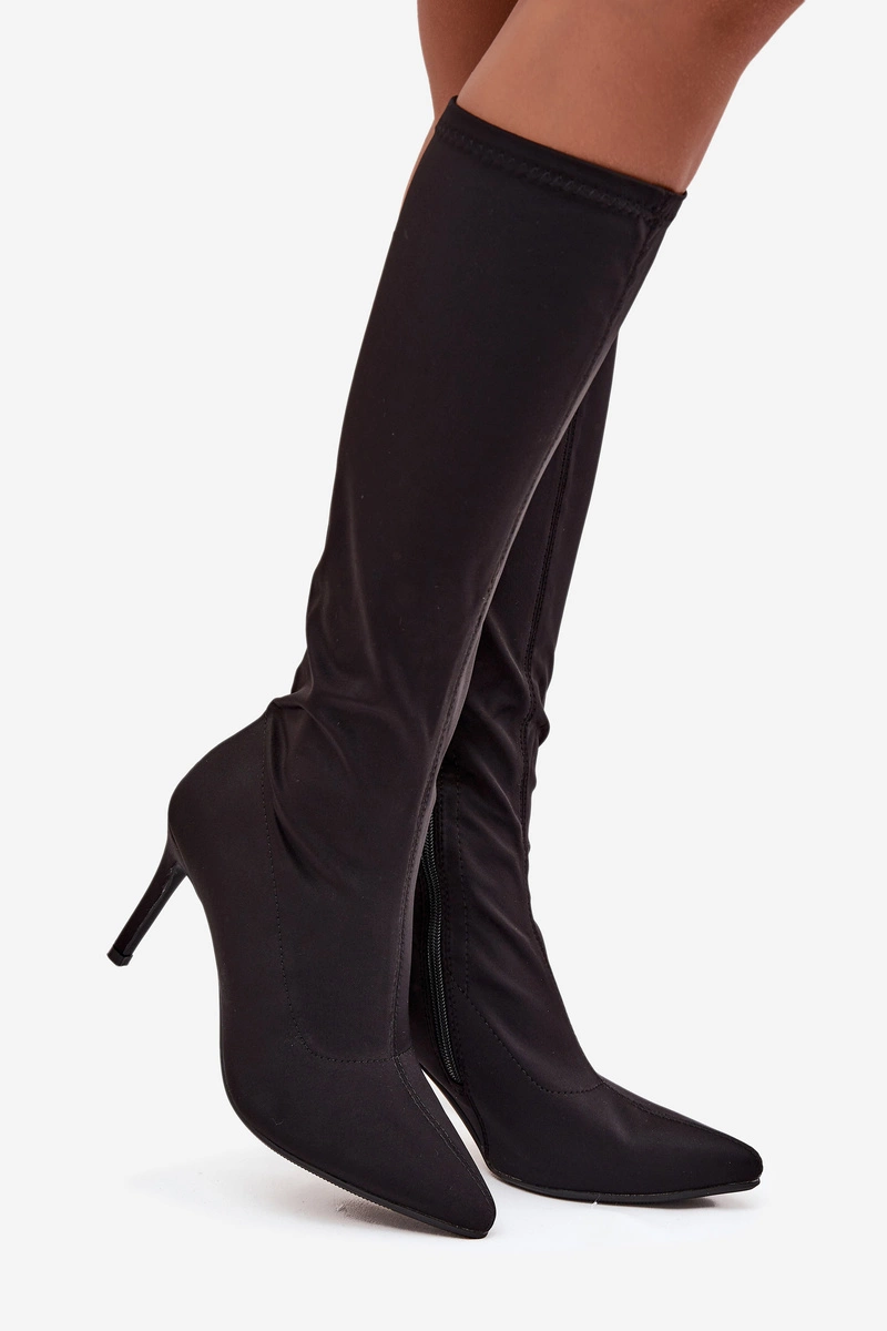 Materiałowe Kozaki Damskie Na Szpilce S.Barski HY52-513 Czarne