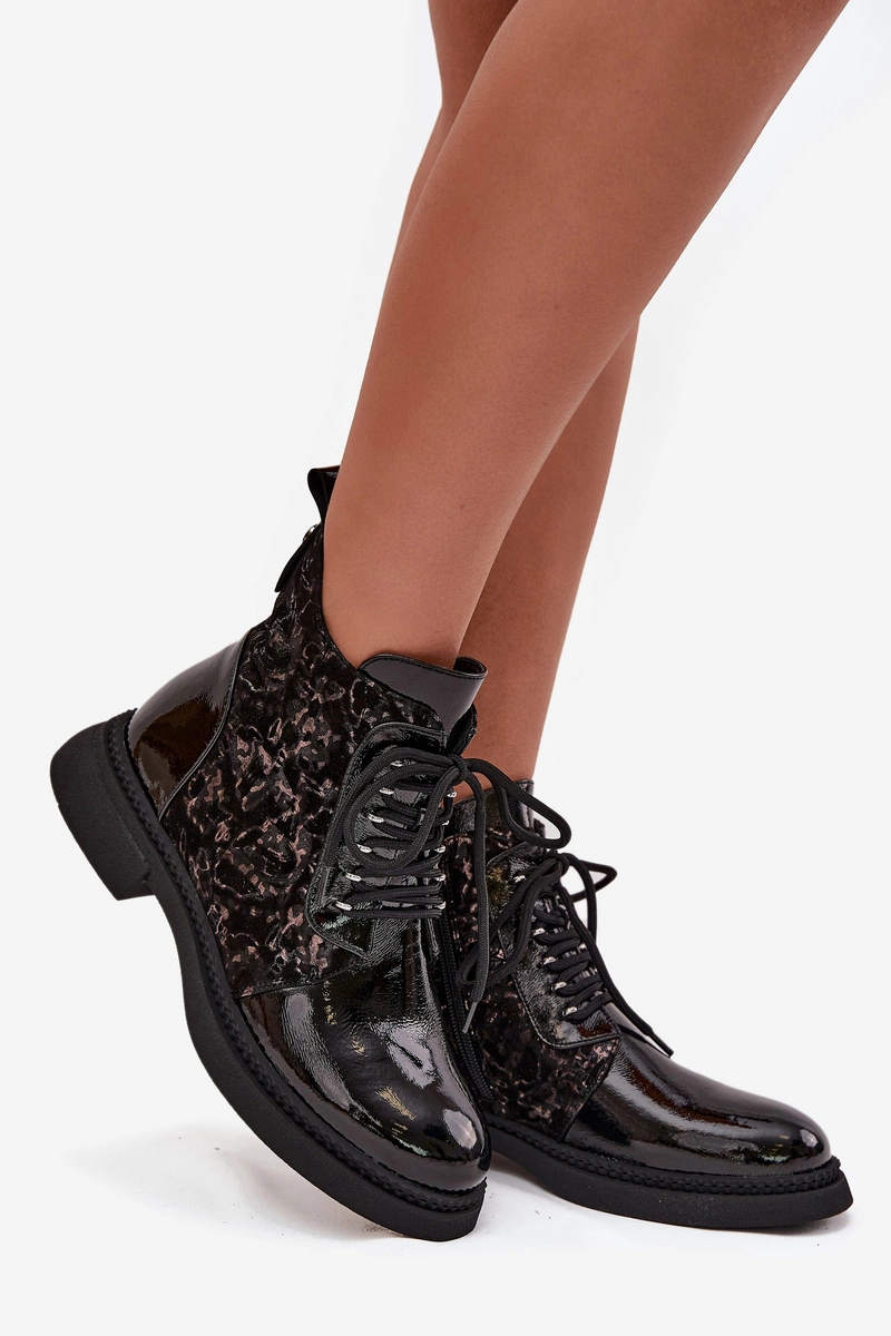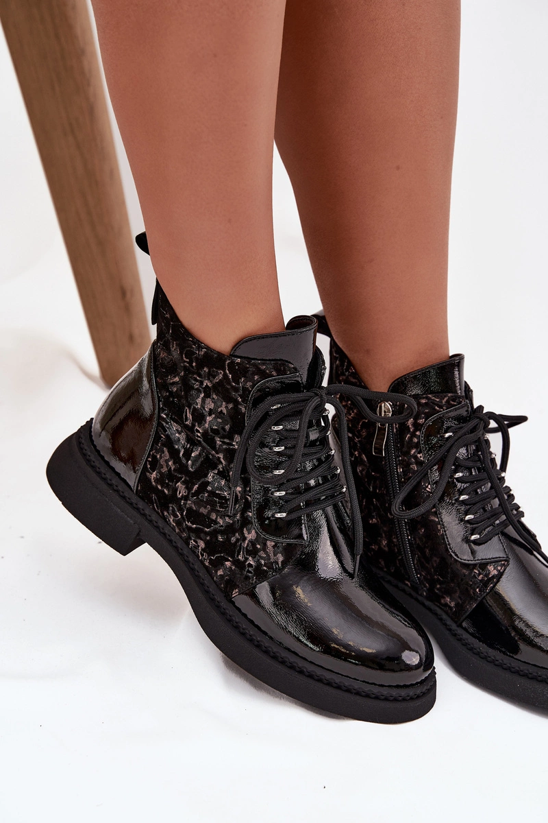 Lakierowane Botki Damskie Ocieplane D&A CR52-613 Czarne