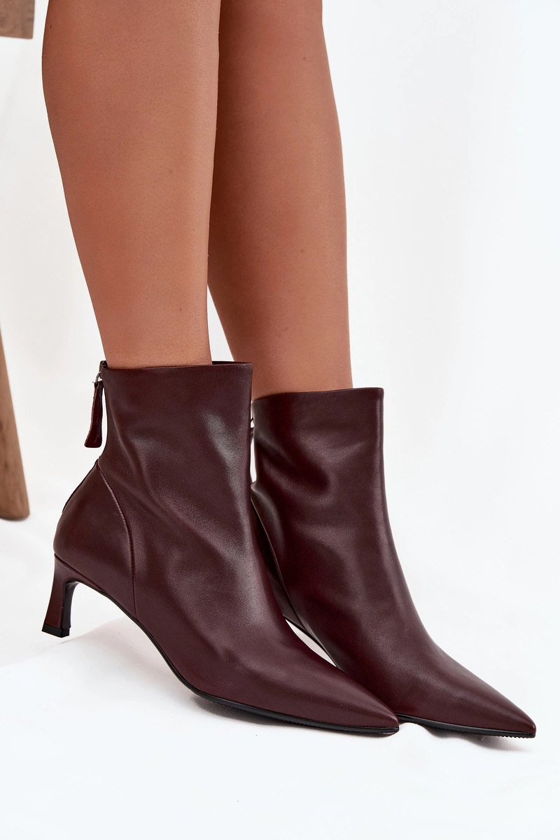 Eleganckie botki damskie wykonane z wysokiej jakości naturalnej skóry to propozycja dla kobiet ceniących klasykę w nowoczesnym wydaniu. Model osadzono na obcasie typu szpilka, która subtelnie wysmukla sylwetkę i dodaje lekkości każdemu krokowi. Szpiczaste noski podkreślają elegancki charakter obuwia, a zamek umieszczony z tyłu ułatwia szybkie zakładanie i zdejmowanie butów. To stylowe botki, które doskonale sprawdzą się zarówno w eleganckich, wieczorowych stylizacjach, jak i w bardziej wyjściowych zestawach na specjalne okazje.