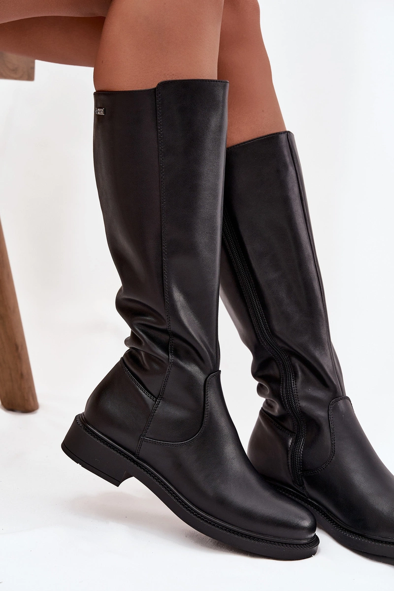 Skórzane Kozaki Damskie Ocieplane Na Płaskim Obcasie Sergio Leone KZ25600-S Czarne