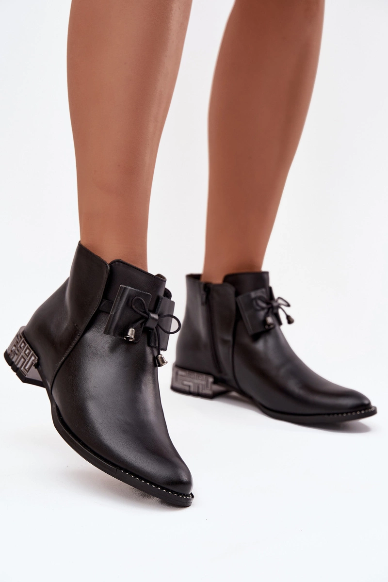 Botki Damskie Z Naturalnej Skóry Na Niskim Obcasie Zazoo 1396 Czarne