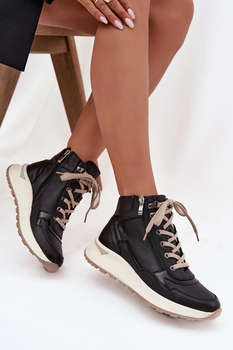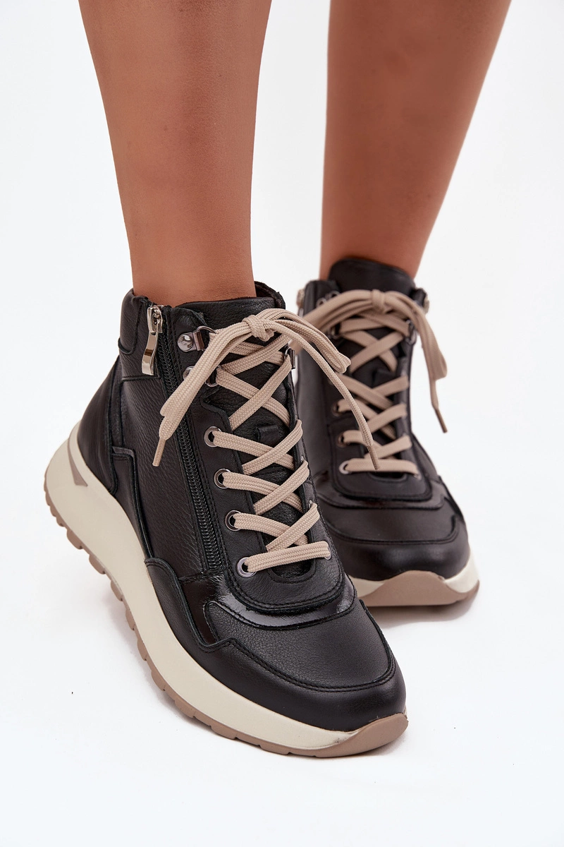 Botki Sportowe Damskie Na Platformie Z Naturalnej Skóry Zazoo Z1239 Czarne
